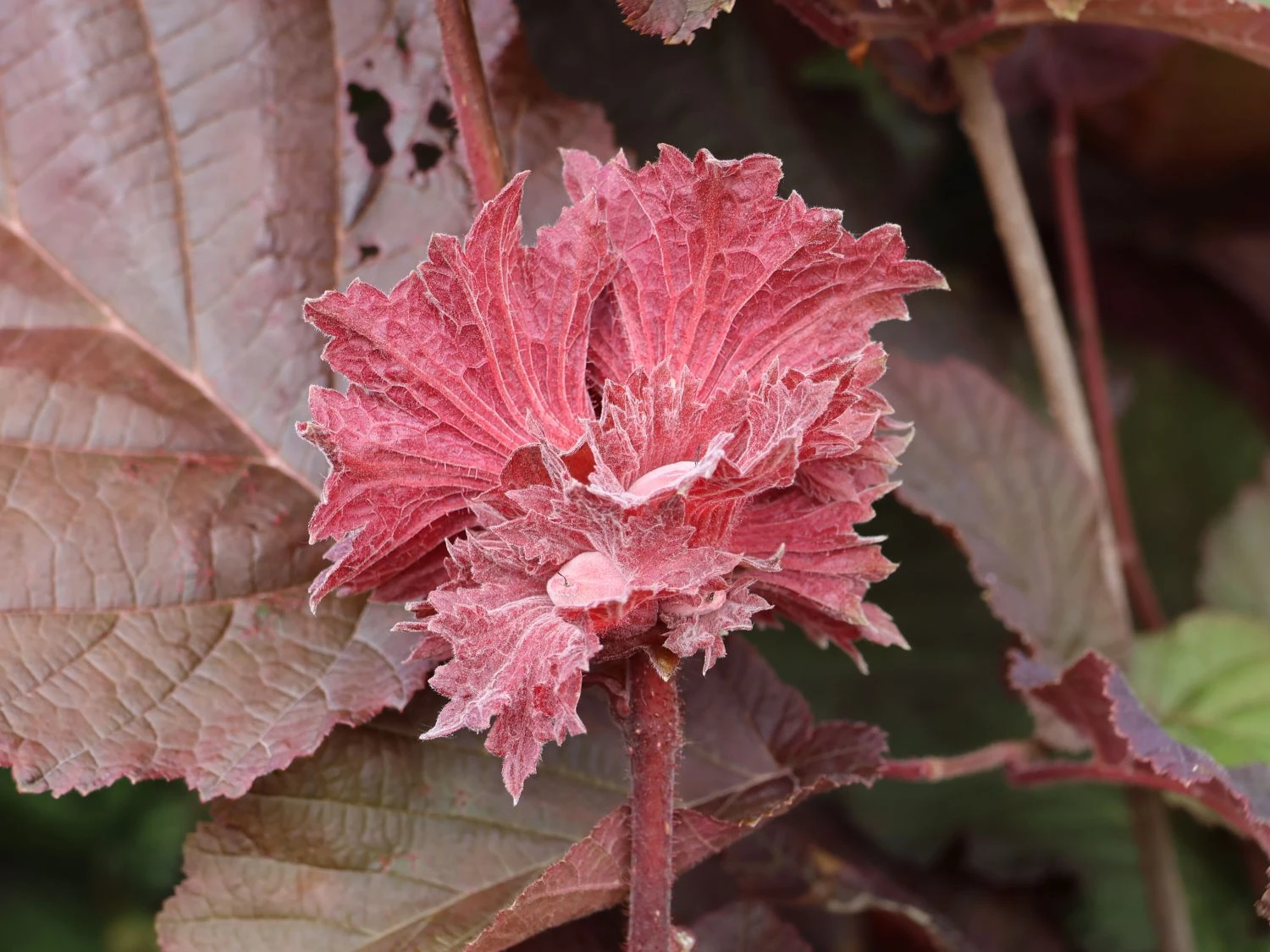 Die Haselnuss ‚Rotblättrige Zellernuss‘ ist attraktiv und ertragreich. Bereits im März bilden sich die kätzchenartigen Blütenstände, die mit dunkelroter Farbe für einen Blickfang im Garten sorgen. Auch das Laub ist dekorativ und zeigt sich in bronzefarbenen Knospen. Die (bot.) Corylus avellana ‚Rotblättrige Zellernuss‘ nimmt die Herbstfarbe praktisch im Frühjahr an und präsentiert Laubblätter, die sich gegensätzlich zu anderen Nussgehölzen entwickeln. Über den Sommer färben sich die ursprünglich bronze- bis tiefroten Laubblätter dunkelgrün. Aus den roten Blütenständen entwickeln sich zahlreiche hell- bis mittelbraune Haselnüsse, deren Schale ebenfalls rötlich schimmert. Die reifen Früchte sind bei ihrer Ernte wohlschmeckend und aromatisch. In der Zeit von September bis in den Oktober hinein lassen sie sich ernten. Die ertragreiche Haselnuss ‚Rotblättrige Zellernuss‘ dient als Nutz- und Zierpflanze. Gärtner die den Fokus auf ausgefallene und besondere Pflanzen legen, haben mit der Corylus avellana ‚Rotblättrige Zellernuss‘ ihre helle Freude. Bis zu sechs Meter hoch und bis zu 2,50 Meter breit wächst das Gehölz. Der Baum ist pflegeleicht und stellt keine großen Ansprüche an den Gärtner. Lediglich Jungpflanzen gießt er regelmäßig. Die Wuchshöhe dieses entzückenden Gewächses beansprucht viel Platz. Daher pflanzt der Gartenfreund diese Haselnuss als Solitär. Alternativ bietet sich ein Arrangement mit anderen Haselnussbäumen an. Hier achtet der Gärtner auf ausreichenden Abstand und pflanzt nicht mehr als einen Baum pro Quadratmeter. Als kleine und junge Pflanze eignet sich die Haselnuss ‚Rotblättrige Zellernuss‘ für die Kultur im Kübel. Da sie pro Jahr bis zu 100 Zentimeter Zuwachs aufweist, bietet sie sich als Kübelpflanze maximal für ein bis zwei Jahre an. Ein Platz direkt auf einer Freifläche des Grundstücks eignet sich besser für die ‚Rotblättrige Zellernuss‘.