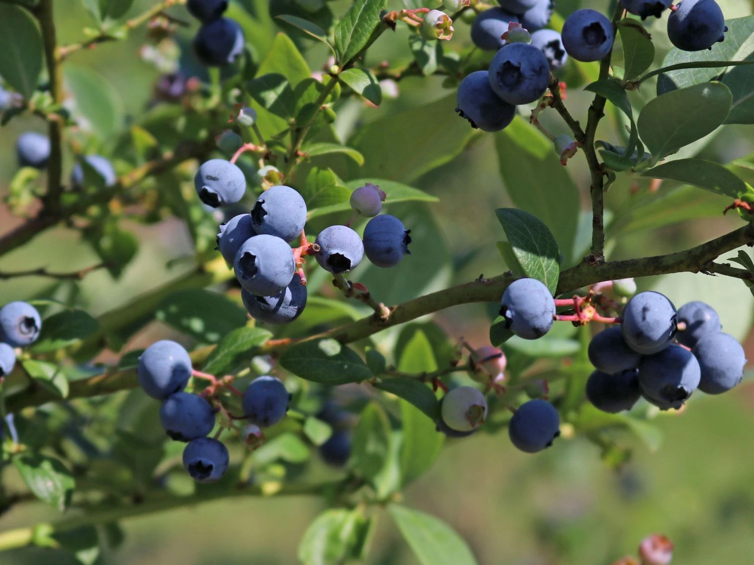 Die Pflanze hat neben ihren dunkelblauen Früchten noch mehr zu bieten. Schönes grünes Laub bedeckt den Strauch während der Sommermonate und im Mai erfreut Vaccinium corymbosum ‚Reka‘ mit glockenförmigen Blüten. Die Heidelbeere ‚Reka‘ stammt aus Neuseeland, bei den dortigen Ureinwohnern wird ihr Name mit ‚Blau‘ übersetzt. Kein Wunder, dass die Sorte so heißt, denn ihre Früchte fallen mit ihrer Farbe zwischen den grünen Blättern auf. Reif sind die Heidelbeeren zwischen Juli und September. Damit die Heidelbeere ‚Reka‘ im Garten gut gedeiht, empfiehlt sich ein durchlässiger Standort und ein schwach saurer Boden. Heidelbeeren sind Flachwurzler, damit diese nicht austrocknen, gießt der Gärtner sie regelmäßig und bedeckt den Boden mit Mulch. Die ‚Reka‘ ist selbstfruchtend, doch um eine gute Fruchtbildung zu gewährleisten, empfehlen sich weitere Pflanzen als Befruchter in der Nähe. Außerdem entfernt der Gärtner Triebe, die vier Jahre und älter sind und regt so den Neuaustrieb fruchttragender Zweige an.