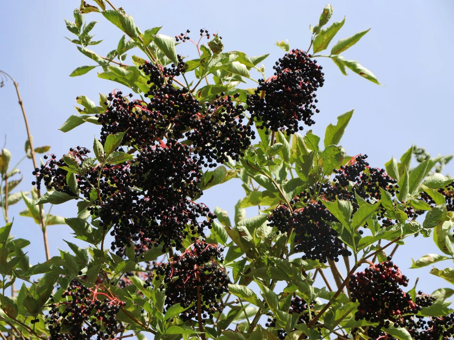 Der Holunder ‚Haidegg 17‘ begeistert jeden Pflanzenfreund durch seine großen Ertragsmengen. Der laubabwerfende Strauch wächst aufrecht mit mehreren aufsteigenden Stämmen. (Bot.) Sambucus nigra ‚Haidegg 17‘ wächst bis zu vier Meter in die Höhe und erreicht ein nahezu gleiches Ausmaß in der Breite. Der Schwarze Holunder kommt in Europa, Asien und in Nordamerika in freier Natur vor. Dort ist der Holunder als Wildgehölz bevorzugt an Waldrändern oder auf Lichtungen anzutreffen. Sambucus nigra ‚Haidegg 17‘ ist eine neuere Sorte aus Klosterneuburg in Österreich. Das Besondere an dieser Holundersorte sind die hohen Erträge. Diese sind in nahezu doppelter Menge im Vergleich zu anderen Sorten, da ‚Haidegg 17‘ über extrem große Fruchtdolden verfügt. Dieser Schwarze Holunder ist stark wachsend und erfreut den Gärtner durch regelmäßige und gute Erträge. Die schwarzen Beeren verfügen über einen kräftigen, aromatischen Geschmack und lassen sich zu Säften weiterverarbeiten. Zudem ist der schöne Strauch mit seinen überhängenden Zweigen eine Zierde für den Garten.