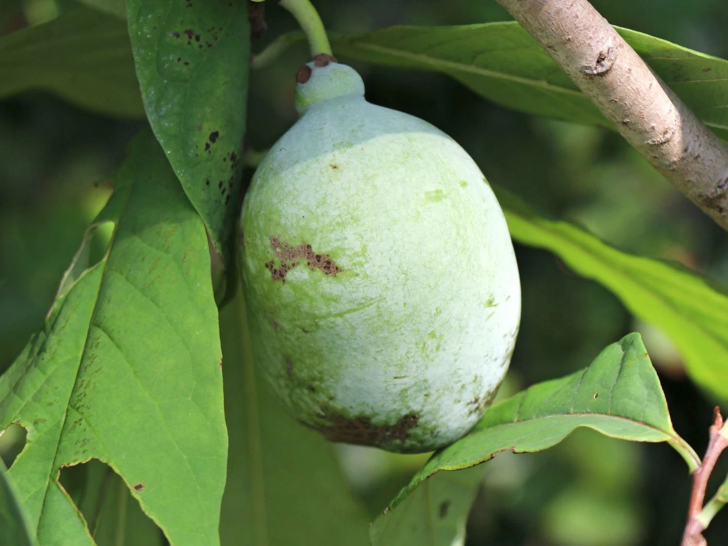 Wenn es nach einigen Standjahren an einem geschützten und sonnenverwöhnten Platz im Garten soweit ist und sich Früchte bilden, ist die Freude groß! Die Herbstfrüchte der Indianerbanane / Papau entstehen aus den Fruchtknoten, von denen jede Blüte gleich mehrere enthält. Zwischen Ende September bis Anfang Oktober lassen sie sich ernten. Die Früchte von Asimina triloba erinnern an Avocados und haben eine grünliche bis gelbgrüne Schalenfarbe, sie erreichen ein Gewicht von 300 g und 10 cm Länge. Die Frucht ist druckempfindlich und muss vorsichtig geerntet werden. Sie sind nicht lange lagerfähig und reift schnell nach, so dass es ratsam ist, sie baldmöglichst zu verzehren. Das Fruchtfleisch ist cremig und weich und lässt sich mit einem Löffel aus der Schale lösen. Die Schale ist zum Verzehr nicht geeignet und ungenießbar. Jedoch kann das Fruchtfleisch wunderbar zu Säften, Milchshake oder andere Süßspeisen verarbeitet werden. Das Fruchtfleisch ist gelblich-weiß und zergeht auf der Zunge. Der exotische Geschmack ist mit keinem unserer mitteleuropäischen Früchte vergleichbar. Die Dreilappige Papau benötigt einen humosen Boden, der stets ausreichend Feuchte aufweisen sollte. Diese Pflanze bietet sich auch für die Kultur im Kübel an, was das Überwintern in den ersten Jahren vereinfacht. Denn die ausgezeichnete Winterhärte von bis zu rund -25 °C erreicht die Indianerbanane / Papau erst, wenn der Stamm genügend ausgebildet ist. Junge Pflanzen der Art gelten als frostempfindlich und der Gärtner muss sie vor Kahlfrösten schützen. Zu seiner Freude zeigt sich die Pawpaw im Allgemeinen als besonders pflegeleicht und Krankheiten und Schädlinge sind an ihr nicht bekannt. Eine gute Wahl für alle Liebhaber seltener Gehölze.