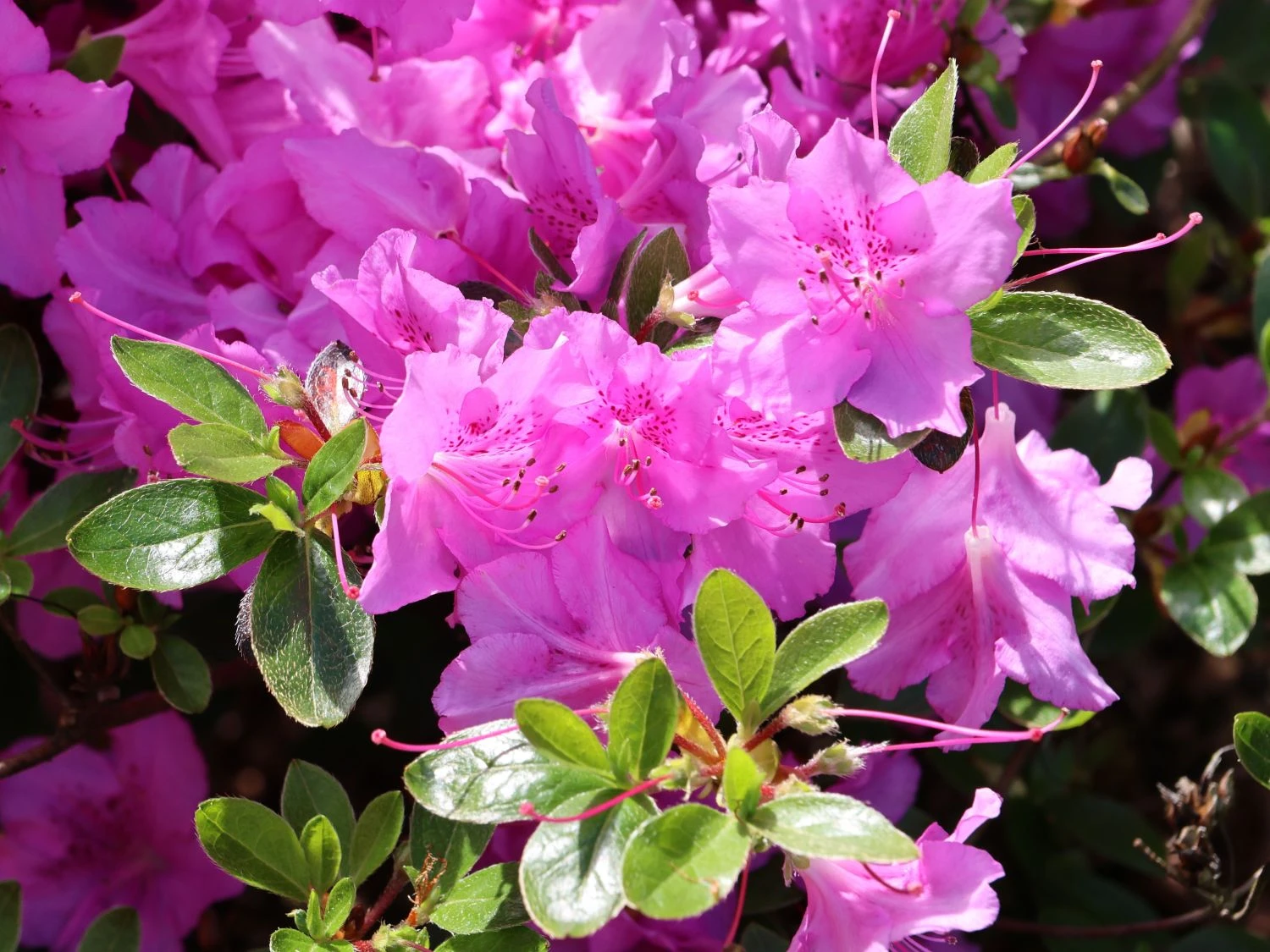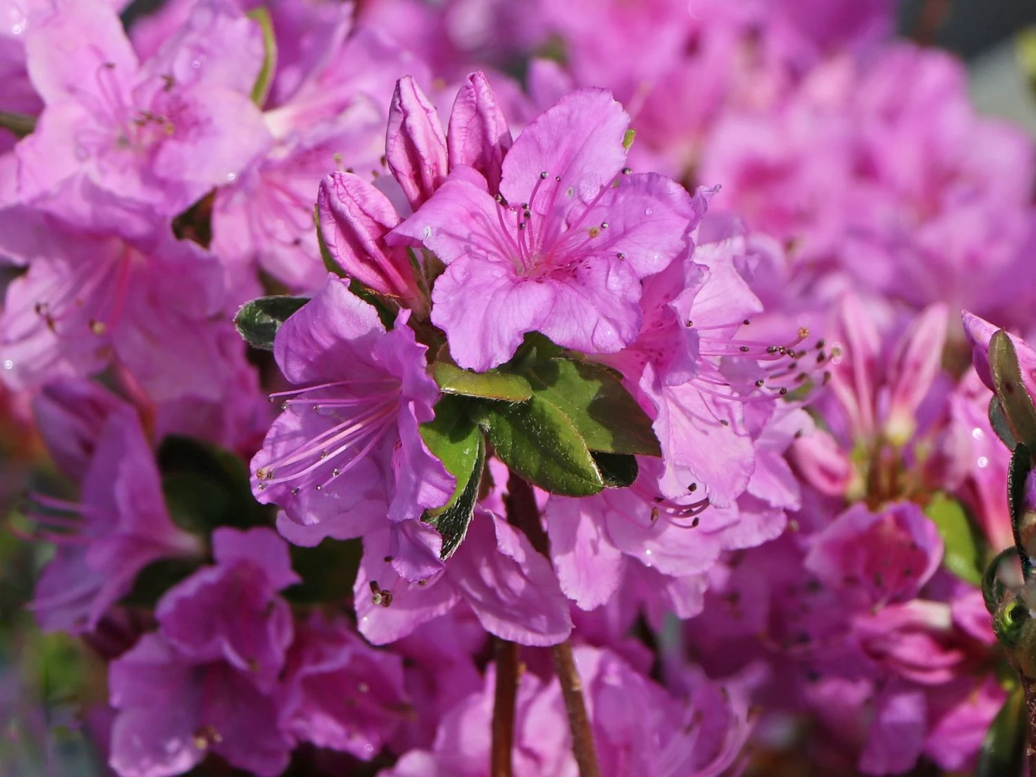 Die Japanische Azalee ‚Otava‘ überzeugt durch ihre eleganten Blüten. Diese sind leuchtend hellrosa, breit geöffnet und erinnern in der Form an funkelnde Sterne. Im Inneren ist die Blüte mit einer interessanten dunkellila Zeichnung verziert. Die Blütentage sind im Zeitraum vom 26 Mai bis zum 10. Juni. Das Blattwerk des Rhododendron obtusum ‚Otava‘ ist länglich eiförmig bis oval und mattgrün. Es gibt keine Herbstfärbung. Der Kleinstrauch ist wintergrün und er stößt im Frühling nur nach sehr kalten Wintern alle Blätter ab. Die Japanische Azalee ‚Otava‘ wächst dicht und kompakt und erreicht nach 10 Jahren eine maximale Höhe von 80 cm sowie eine Breite von bis zu 100 cm. Sie verzeichnet einen durchschnittlichen Zuwachs von 5 bis 8 cm im Jahr.