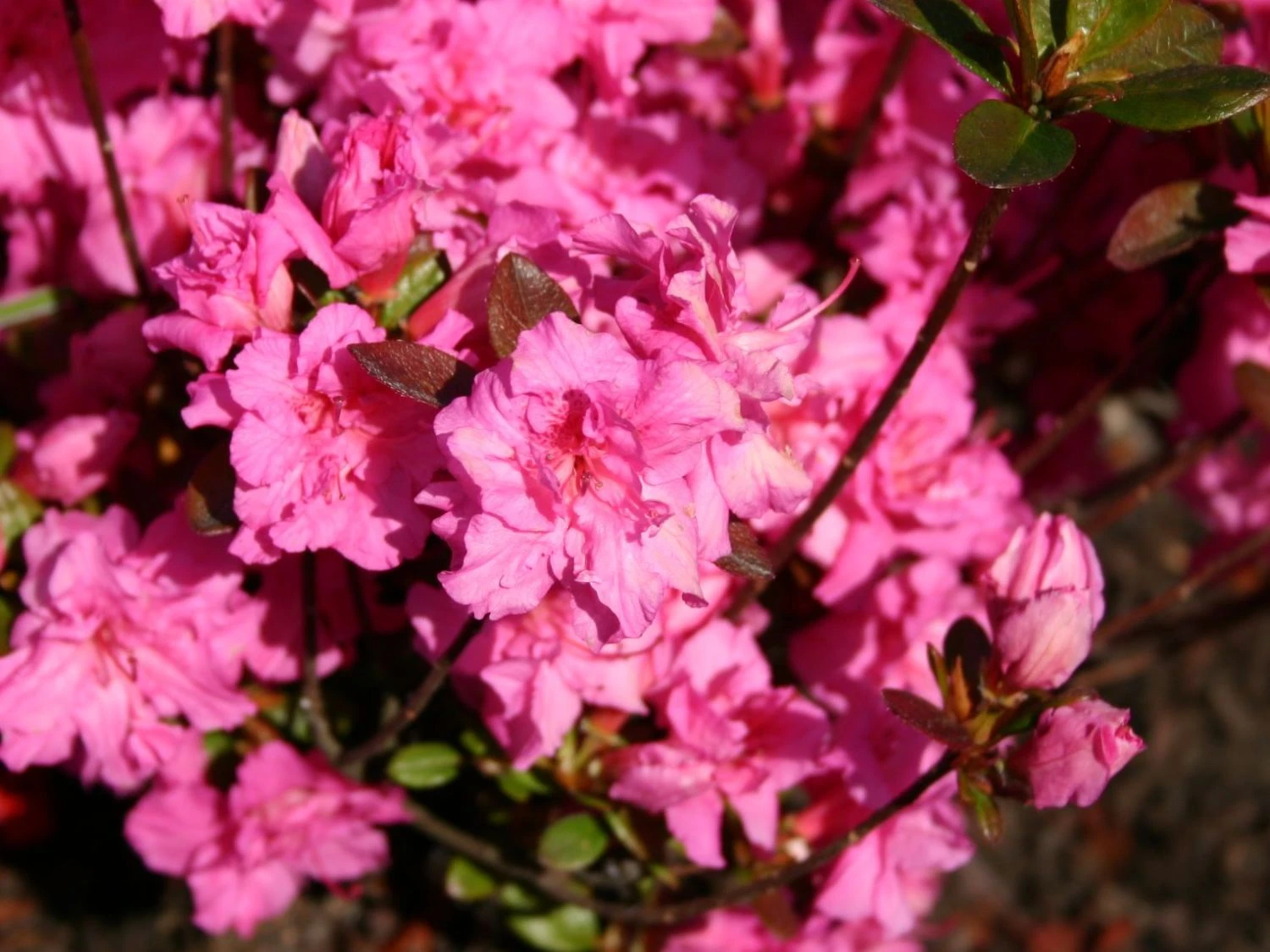 Die Japanische Azalee ‚Petticoat‘ ® ist so auffallend und schön, dass sie an ein Rockabilly-Kostüm erinnert. Die Blüten sind schwungvoll gekräuselt und stark gefüllt. Die Farbe ist fröhlich reinrosa, mit einer weinroten, sanften Zeichnung. Ihren großen Auftritt haben sie vom 18.05. – 04.06., also von Mitte Mai bis Anfang Juni. Das Blattwerk ist glänzend hellgrün und breit lanzettlich. Der Rhododendron obtusum ‚Petticoat‘ ® ist wintergrün, zeigt aber eine bühnenreife Herbstfärbung. Diese zeigt sich vierfarbig und reicht von grün nach gelb über orange bis rot. Die Japanische Azalee ‚Petticoat‘ ® ist ein niedrig wachsender und breit-kompakter Kleinstrauch mit einem eher schwachen jährlichem Zuwachs. Sie erreicht nach einigen Jahren maximal eine Höhe von 70 cm und eine Breite von 90 cm.