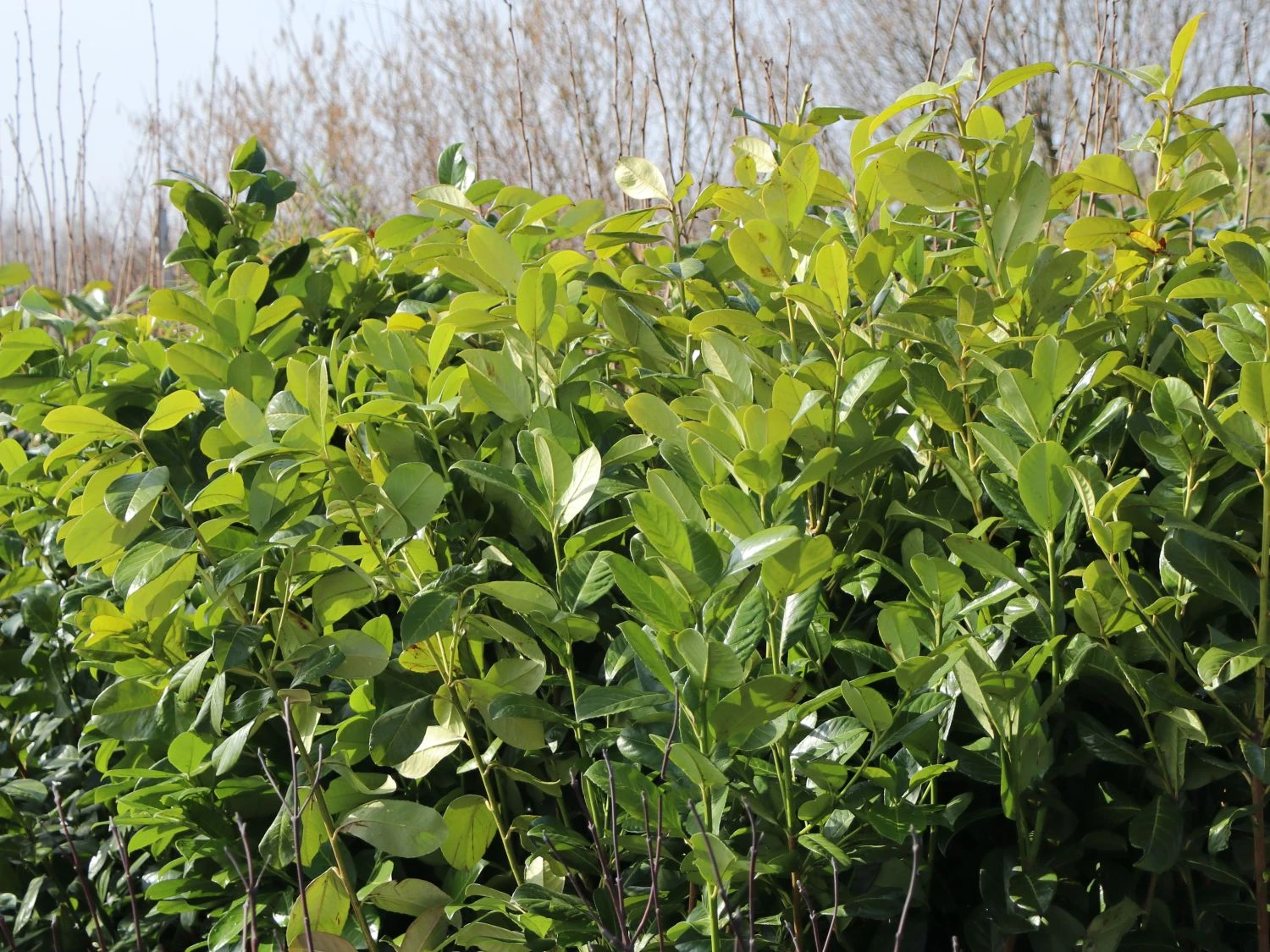 Die Lorbeerkirsche ‚Rotundifolia‘, die unter der botanischen Bezeichnung Prunus laurocerasus ‚Rotundifolia‘ bekannt ist, zählt zur Familie der Rosengewächse. Diese für wärmere Gegenden äußerst gut geeignete und kräftige Züchtung entstand bereits im Jahre 1865 in Frankreich. Heute ist sie weltweit in Parkanlagen und Gärten vertreten und gilt dabei als äußerst begehrt. Den Grund hierfür liefert der dichte und kompakte rasche Wuchs, der mit den großen Blättern eine natürliche Mauer, durch die neugierige Blicke und Tiere nicht leicht dringen können, schafft. Diese ist das ganze Jahr über in Takt, da das Gewächs zu den immergrünen Pflanzen zählt. Im Gegensatz zu vielen anderen Hecken müssen Gärtner bei der Lorbeerkirsche ‚Rotundifolia‘ nicht lange warten, bis sie diesen blickdichten Schutzwall gebildet hat. Aufgrund ihres schnellen Wuchses geschieht das rasch. Daher stellt sie ebenso eine gut geeignete und optisch bemerkenswerte Alternative zum Lebensbaum dar.