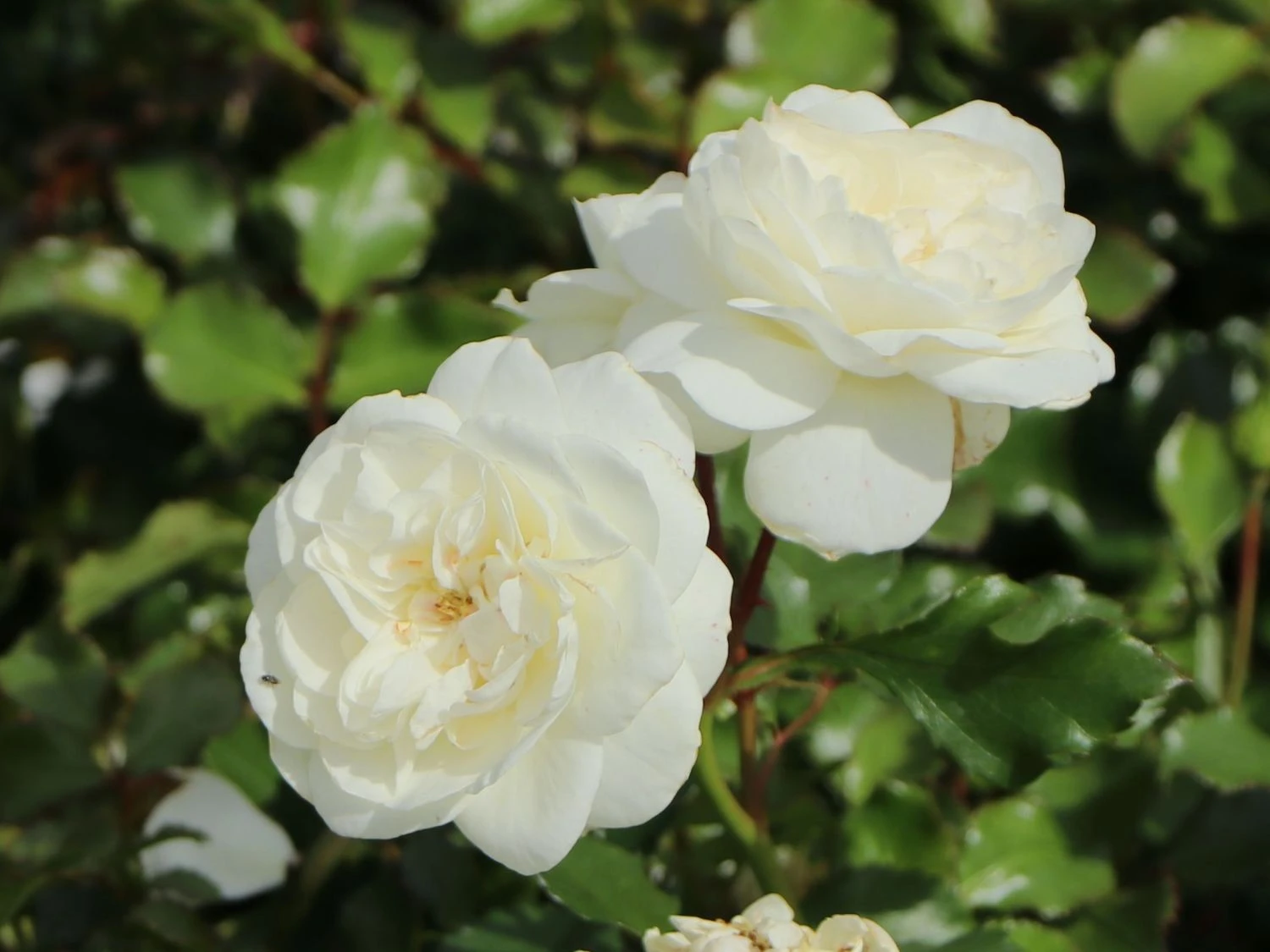 Die Kleinstrauchrose ‚Bounty‘ ® erhellt mit ihren weißen Blüten alles um sich herum. In unbändiger Fülle erscheinen die 4 bis 6 cm großen Blüten an (bot.) Rosa ‚Bounty‘ ®. Sie entwickeln sich in üppigen Dolden, verteilen sich über die gesamte Wuchshöhe von 60 bis 80 cm und bezaubern in der Breite von 50 bis 100 cm mit ihrem stilvollen Anblick. Weiße Blüten wirken immer elegant und lassen sich vielfältig in ein bestehendes Gartenkonzept integrieren. Sie komplettieren einen farblich einheitlichen Garten ebenso wie ein buntes Mischbeet. Hier heben die weißen Blüten andersfarbige Blüten hervor und verhelfen ihnen zu einer größeren Intensität. Daneben verströmen die Blüten der Kleinstrauchrose ‚Bounty‘ ® einen zarten Duft, der sich sacht und angenehm im Garten verteilt.