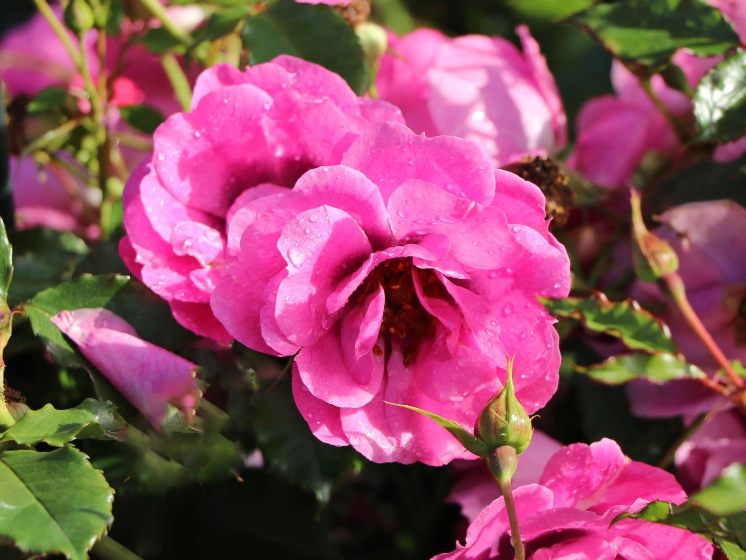 Die brombeerfarbigen Blüten der Rosa Orienta ® ‚Djamila‘ erreichen einen Durchmesser von sechs bis acht Zentimetern und sind einfach nicht zu übersehen. Das grüne Laub der Pflanze unterstreicht ihre Wirkung und zusammen entfalten sie eine harmonische Eleganz. Diese ist in jedem Umfeld präsent und macht die Kleinstrauchrose Orienta ® ‚Djamila‘ zu einer vielseitigen Gartenbewohnerin. In gemischten Beeten wirkt sie als strahlender Mittelpunkt zwischen anderen Pflanzen. In einem klassischen Rosenbeeet komplettiert sie mit ihren ungewöhnlichen Blüten die Ausdruckskraft ihrer Artgenossinnen. Vor einem Hauseingang wirkt die Kleinstrauchrose Orienta ® ‚Djamila‘ wie eine Einladung an den Besucher und versinnbildlicht die orientalische Gastfreundschaft. Die Pflanze wächst ideal an einem sonnigen Standort, denn wie alle Rosen ist auch diese Sorte ein ausgesprochenes Sonnenkind. Hier entfaltet der öfterblühende Rosenstrauch eine reiche Anzahl an Blüten und duftet verführerisch. Der Boden ist optimal, wenn er tiefgründig ist und ausreichend feucht. Auch braucht die Rosa Orienta ® ‚Djamila‘ viele Nährstoffe und bedankt sich für regelmäßige Düngergaben mit einem guten Wuchs. Sie erreicht eine Wuchshöhe von 50 bis 80 cm und bildet sich als kompakter Rosentraum aus. Zwischen drei und vier Pflanzen dieser Sorte finden auf einem Quadratmeter Platz ohne sich gegenseitig im Wachstum zu behindern. Die Kleinstrauchrose Orienta ® ‚Djamila‘ hat orientalische Wurzeln, denn sie stammt von der Rosa persica, auch Persische Rose genannt, ab. Dennoch ist ihrem Züchter mit dieser Sorte eine robuste Kreation mit guter Blattgesundheit gelungen, die in unseren Breiten hervorragend wächst.. Gegenüber Mehltau ist die Rosa Orienta ® ‚Djamila‘ kaum anfällig und auch Sternrußtau zeigt sich nur selten an ihr. Außerdem ist sie winterhart und braucht keinen besonderen Schutz in den kalten Monaten des Jahres. Wie alle Rosen bedankt sich ‚Djamila‘, wenn der Pflanzenfreund ihren Wurzelbereich circa 15 cm hoch mit Erde anhäufelt und so die Veredelungsstelle vor Frost schützt. Steht sie im Kübel, ist ein Umwickeln des Pflanzgefäßes mit Jute oder Vlies ratsam, um die Wurzeln vor dem Erfrieren zu bewahren.