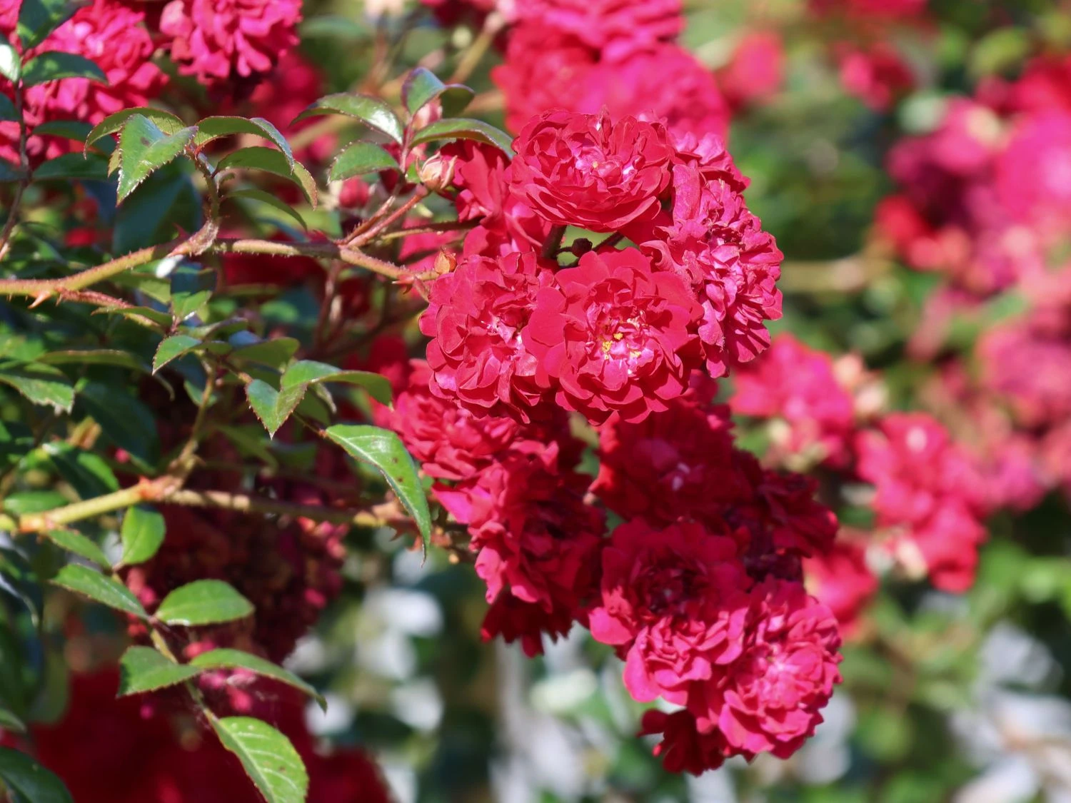 Auf nährstoffreichem Boden und in der prallen Sonne gedeiht diese Pracht äußerst gut. Viele kleine, dunkelrote Blüten verzaubern die Umgebung und machen Rosenbögen, Hauswände oder andere Vorrichtungen für Kletterrosen zum absoluten Highlight im Garten. Die gesunde Sorte kann ohne viel Aufwand überwintern und ist in der normalen Pflege anspruchslos. Wem die Blütenpracht zu üppig wird, kann etwas ausdünnen und einige Triebe reduzieren. Mehr ist eigentlich nicht notwendig, um die bezaubernden Kostbarkeiten unter Kontrolle zu halten. Mit der Kletterrose ‚Momo‘ ® hat der Gärtner die Garantie, dass es in der gesamten warmen Zeit im Jahr überall herrlich blüht. Bienen und andere Insekten finden sich ein, die bei der Befruchtung der Pflanzen eine wichtige Rolle spielen. Kletterrosen verbreiten eine bezaubernd romantische und nostalgische Atmosphäre im Garten und die Kletterrose ‚Momo‘ ® macht hier keine Ausnahme. Im Gegenteil – sie ist eine der kultivierten Pflanzen, die sich seit vielen Jahren immer großer Beliebtheit erfreut. Mit dieser Pflanze kann der Gärtner ruhig Ehre einlegen und wird mit Sicherheit nicht enttäuscht werden. Die Kletterrose ‚Momo‘ ® hält, was sie verspricht und macht die kreative Arbeit im Garten zum Vergnügen. Eine schöner Rosenbogen, eine verträumte Pergola oder eine perfekt dekorierte Hauswand sind mit dieser hoch wachsenden Pflanze kein Problem. Die gute Robustheit der Kletterrose macht das Bild komplett und erklärt, warum die Rosa ‚Momo‘ ® ein solch positive Resonanz bei den Liebhabern erzeugen konnte.