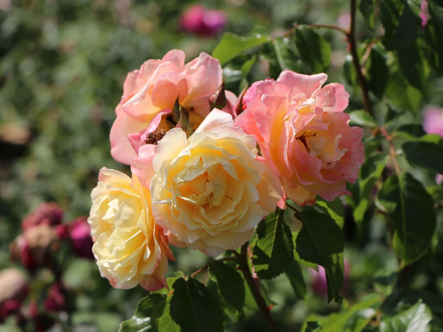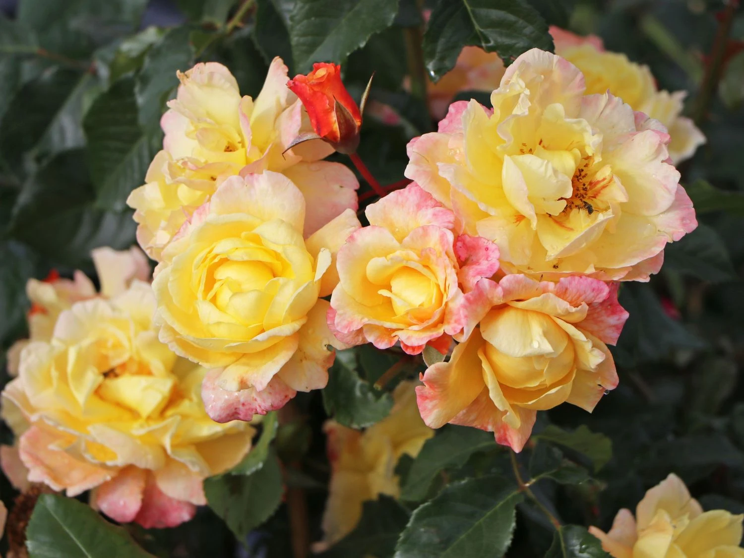 Ihr Umfeld erfüllt die Rose mit einem aparten fruchtigen bis würzigen Duft. Mit ihrer Strahlkraft ist diese Kletterrose an jedem Standort ein Highlight. Der Rosenkavalier entfernt regelmäßig die verblühten Blüten. Dadurch fördert er das Ausbilden neuer Knospen bis in den Herbst hinein. Einen wunderschönen Farbkontrast bilden die glänzenden, dunkelgrünen Blätter der Kletterrose, die das Zitronengelb der Blüten schön in Szene setzen. Die Kletterrose erreicht spielend eine Höhe von maximal 2,50 Metern. Durch die zahlreichen Grundtriebe ist der Rosenstrauch gut verzweigt. Er wird rund 100 Zentimeter breit. Wie unkompliziert das schöne Gehölz ist! Die Kletterrose ‚Moonlight‘ ® präsentiert sich winterhart und eignet sich für jeden Garten. Das gelbblühende Rosenwunder bevorzugt einen sonnigen bis halbschattigen Platz und gedeiht am besten auf einem humosen Gartenboden. Der Gärtner befestigt die jungen Triebe beim Pflanzen an einer Kletterhilfe, den Rest erledigt die Rose alleine. Für eine Gruppe setzt der Rosenfreund pro Quadratmeter eine Pflanze. Im Kübel ziert Rosa ‚Moonlight‘ ® Terrassen, Innenhöfe oder Balkone. Im Kübel sind Rosen nicht derart winterhart wie ausgepflanzt im Garten. Es empfiehlt sich, als Winterschutz beispielsweise Laub um den Kübel zu häufen oder mit Luftpolsterfolie zu schützen. Auch kann der Kübel an einer Hauswand auf der windabgewandten Seite das Winterquartier beziehen. Der Pflanzkübel hat idealerweise eine Höhe von gut 60 Zentimetern, da Rosen Tiefwurzler sind und die Veredlungsstelle circa fünf Zentimeter tief einzupflanzen ist. Lediglich im Bedarfsfall erhält diese Rosensorte einen Rückschnitt. Der Gärtner kürzt die Zweige im Frühjahr nicht mehr als bis zu einem Drittel ein oder entfernt alte Äste. Die schöne ‚Moonlight‘ ® ist mehr als eine Kletterrose: Sie ist ein Blüten- und Duftereignis im Garten.