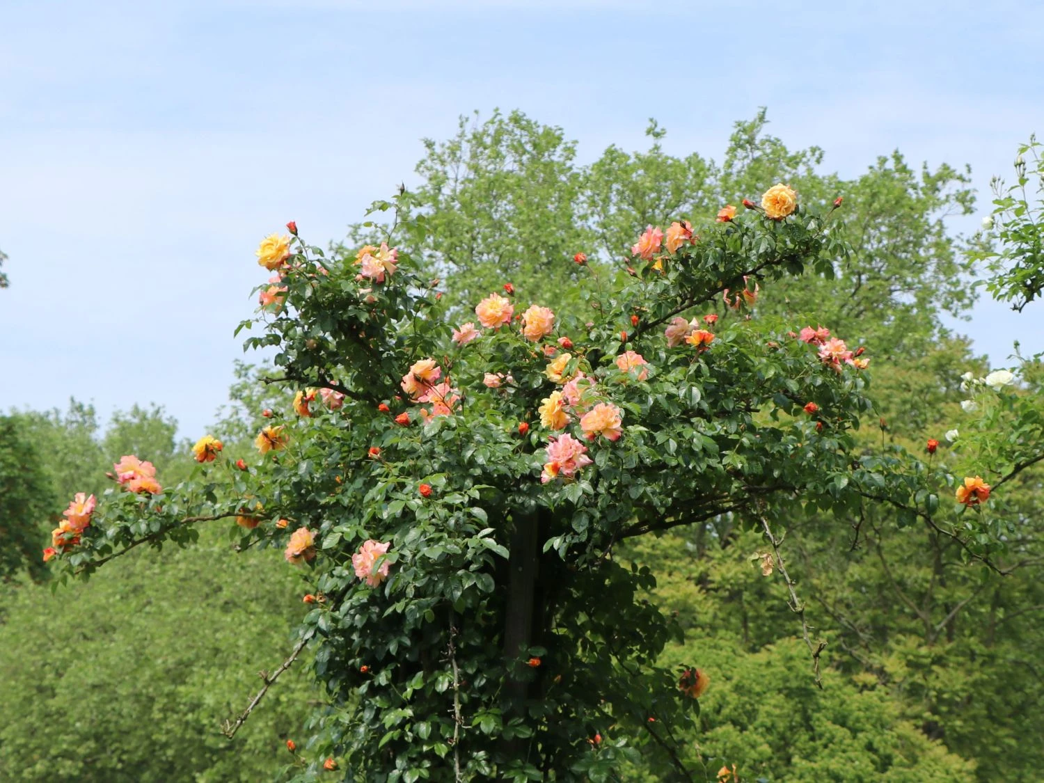 Die Kletterrose ‚Moonlight‘ ® ist schön wie das Mondlicht in einer romantischen Sommernacht! Mit ihren großen gelben Blüten und ihrem intensiven Duft ist sie ein attraktiver Blickfang im Gartenbeet. Die starkwüchsige Kletterrose ist eine Zuchtsorte von W. Kordes‘ Söhne aus dem Jahr 2004. Längst hat (bot.) Rosa ‚Moonlight‘ ® unzählige Liebhaber weltweit gefunden. Denn das ausdrucksstarke Gelb ihrer prächtigen bis zu 14 Zentimeter großen Blüten steht dem des Vollmonds in Nichts nach. Das elegante Gehölz verleiht jedem Standort durch Optik und betörenden Duft einen romantischen Anstrich. Von Juni bis in den Oktober erfreut sie jeden Betrachter mit ihrem herrlichen Flor. Was für eine Blütenfülle Rosa ‚Moonlight‘ ® präsentiert! An den bestachelten Trieben entwickeln sich im Mai kupferfarbene Knospen, aus denen sich die tiefgelben, halbgefüllten Blüten entwickeln. Diese entwickeln beim Verblühen einen rosa Touch. Die Blütenwunder stehen in Dreiergruppen den Zweigen. Die Kletterrose ‚Moonlight‘ ® ist eine Diva und liebt den Soloauftritt im Gartenbeet, wo sie flink Rosenbögen, Pergolen oder Rankgitter an Hauswänden erobert.