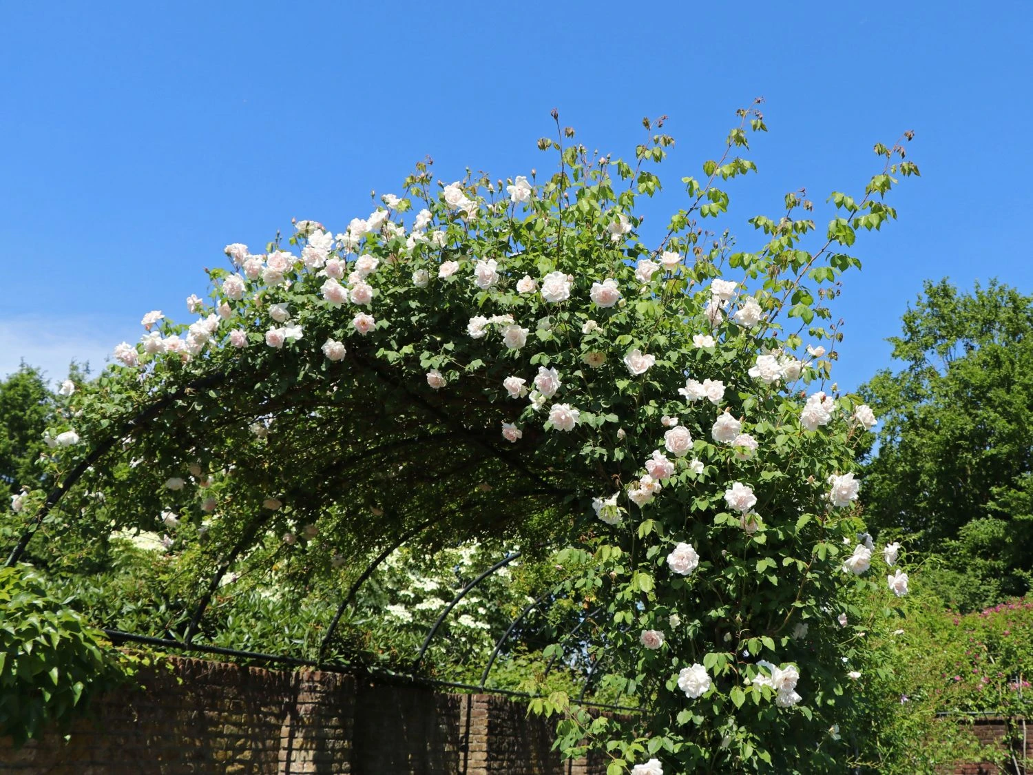 Starkwüchsig mit langen und überhängenden Trieben klettert ‚New Dawn‘ an Wänden und Rankgerüsten aller Art empor und erreicht dabei eine Höhe von bis zu 300 cm. Auch für Pflanzgefäße ist sie geeignet und wirkt auch dort äußerst dekorativ.