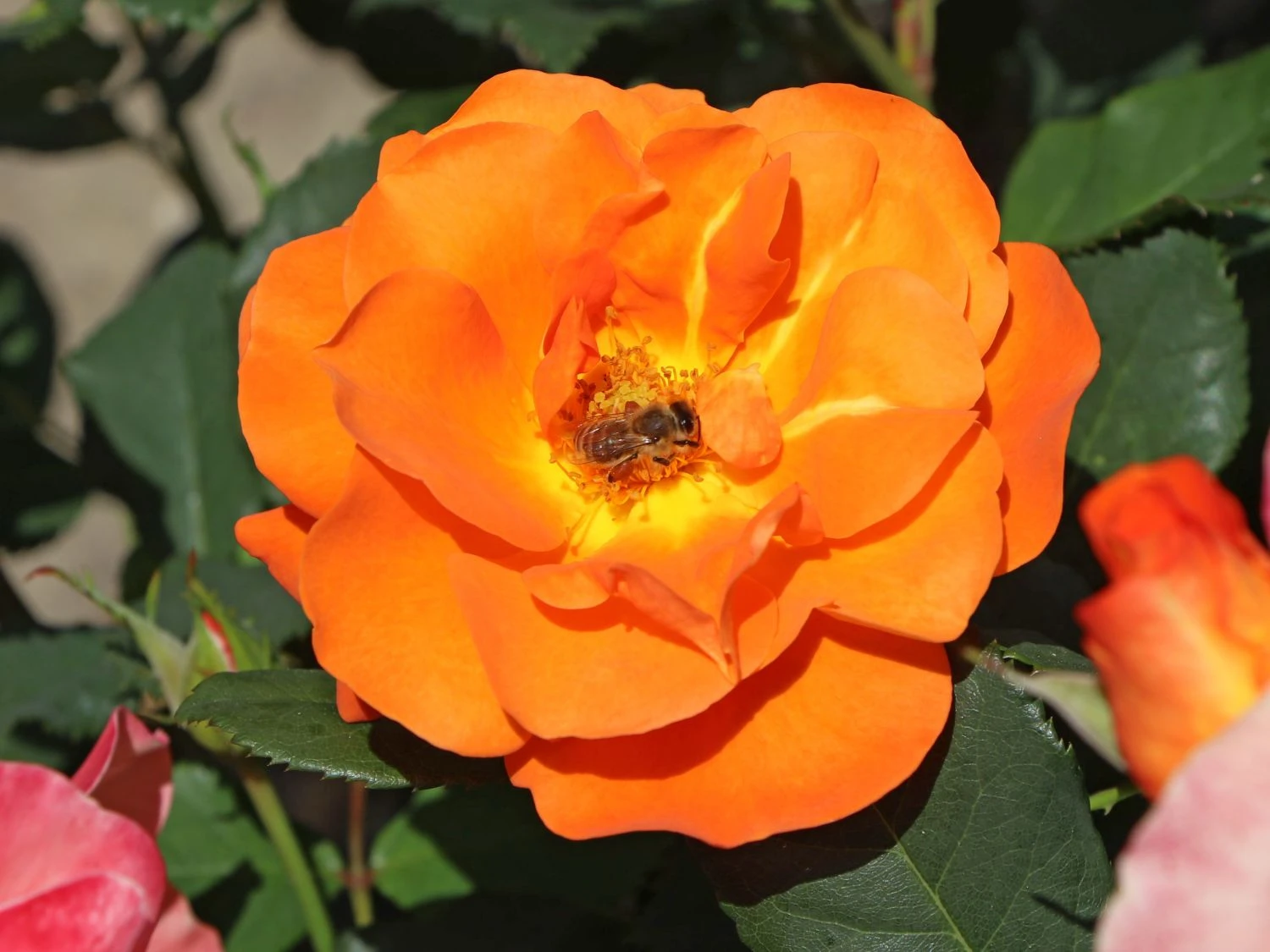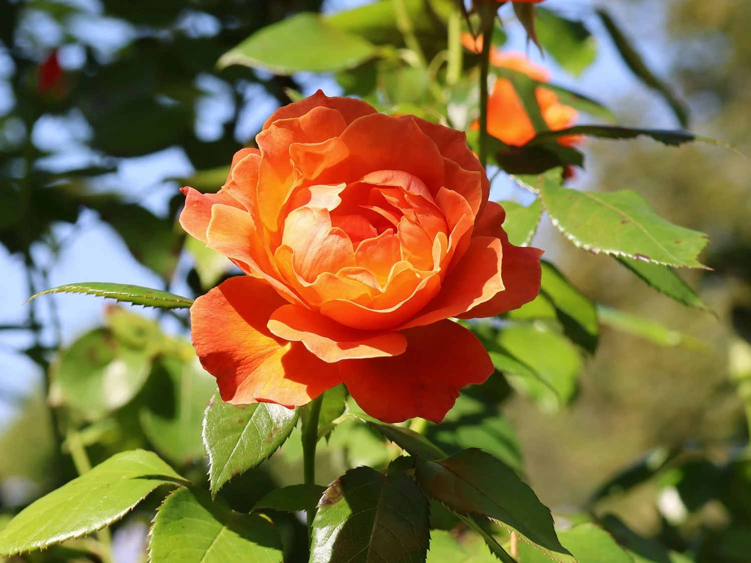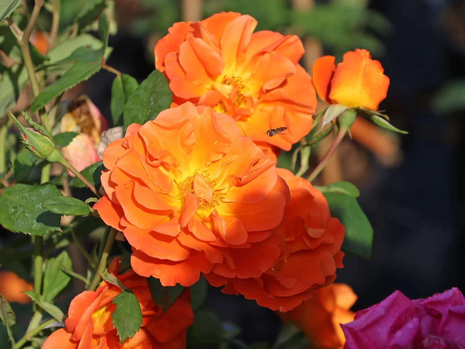 Die Kletterrose ‚Orange Dawn‘ vermittelt mit ihren leuchtend orangefarbenen Blüten den Eindruck, als würde den lieben langen Tag die Sonne aufgehen. Die duftenden Blüten von (bot.) Rosa ‚Orange Dawn‘ stellen auch für viele Nützlinge eine gute Nahrungsquelle dar. Die halbgefüllten Blüten locken mit ihrem süßen Duft nach Nektar Bienen, Hummeln und viele andere Insekten an. In der Zeit von Juni bis weit in den September hinein – in milden Regionen sogar bis Oktober – lässt sich dieses Blütenspektakel bewundern. Wer auf der Suche nach einer Kletterrose ist, die mit reinorangen Blüten punktet, ist bei dieser Sorte genau richtig gelandet. Eine weitere bemerkenswerte Eigenschaft ist der moderate Wuchs der Kletterrose ‚Orange Dawn‘. Sie wächst auf eine Höhe von 200 bis 250 Zentimeter sowie auf eine Breite von bis zu 150 Zentimetzer heran und eignet sich durch diese Traummaße auch für kleinere Rankgitter, Spaliere oder Obeliske perfekt.