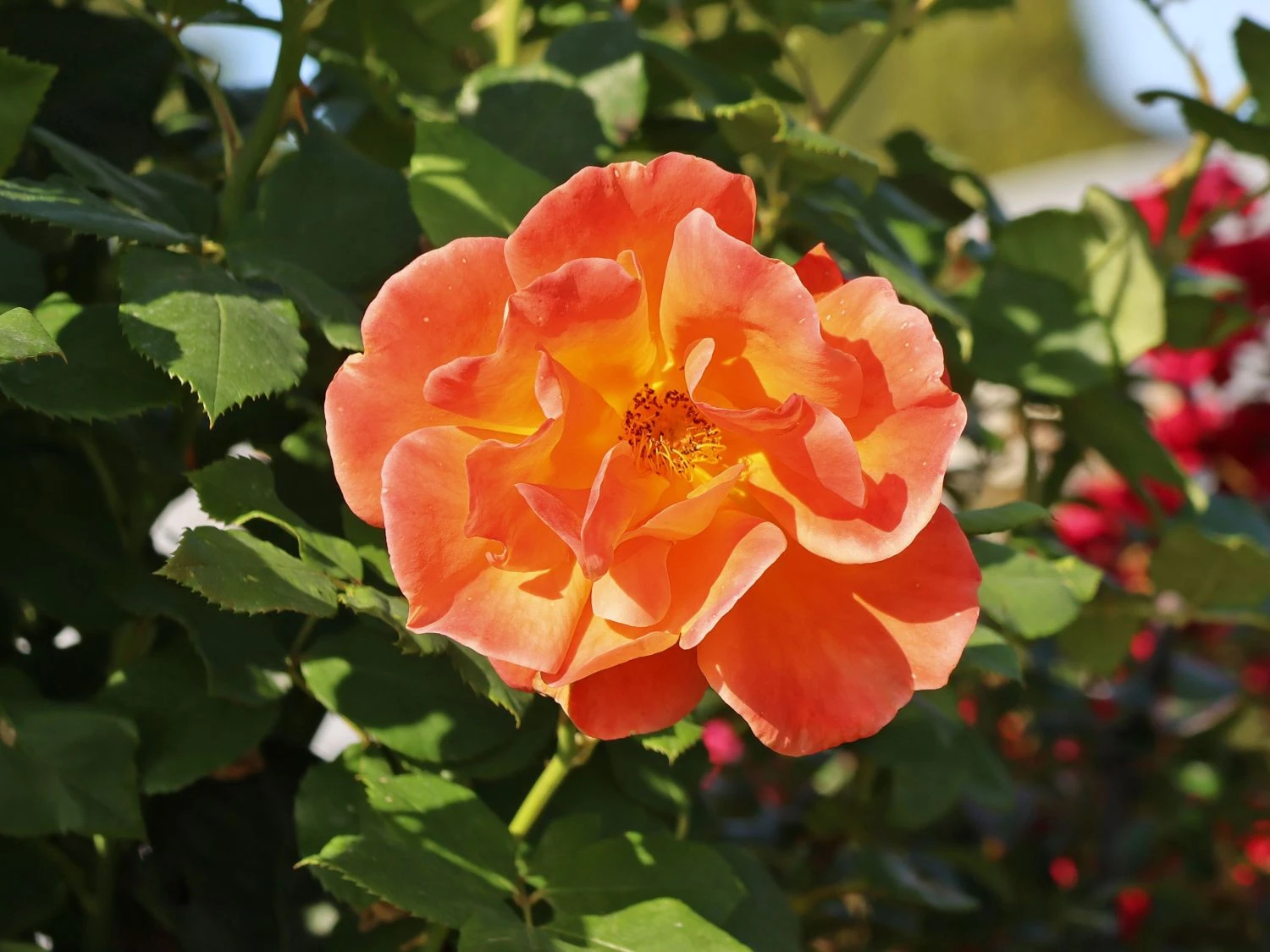 Die Kletterrose ‚Orange Dawn‘ entwickelt einen lockerhorstigen Wuchs. Neben den leuchtend-orangen Blüten stellen die grünen Blätter einen fabelhaften Kontrast dar. Das Blattwerk ist glänzend-grün und fällt im späten Herbst zu Boden, sobald sich die Rose in den Winterschlaf verabschiedet. Der ideale Standort für Rosa ‚Orange Dawn‘ liegt im sonnigen bis halbschattigen Bereich des Gartens. Hier kommt die leuchtende Farbe der Blüten noch vorteilhafter zur Geltung und auch das Wachstum und die Blütenbildung wird durch viel Sonnenschein positiv beeinflusst. Der Boden sollte nährstoffreich, locker, frisch bis feucht und gut durchlässig sein. Ab Frühjahr freut sich die Kletterrose ‚Orange Dawn‘ über regelmäßige Düngergaben. Nach Mitte Juli ist auf Düngergaben zu verzichten, da sich die Triebe sonst nicht ausreichend entwickeln können, um den Winter zu überstehen. Die Kletterrose ‚Orange Dawn‘ lässt sich äußerst vielfältig einsetzen. Sie ist eine beliebte Kletterrose für Spaliere und Obeliske oder verschönert erfolgreich Hauswände und Sichtschutze. Als wunderschöne Begleiter eignen sich verschiedene Gräser, Clematis oder bunt blühende Stauden. Hier sind der Fantasie keine Grenzen gesetzt, um die farbliche Pracht noch gekonnt zu unterstützen. Mit der Kletterrose ‚Orange Dawn‘ kommt ein regelrechtes Leuchtfeuer in den Garten. Diesem Schmuckstück ist zu jeder Zeit – nicht nur in der Morgendämmerung – die ungeteilte Bewunderung gewiss!
