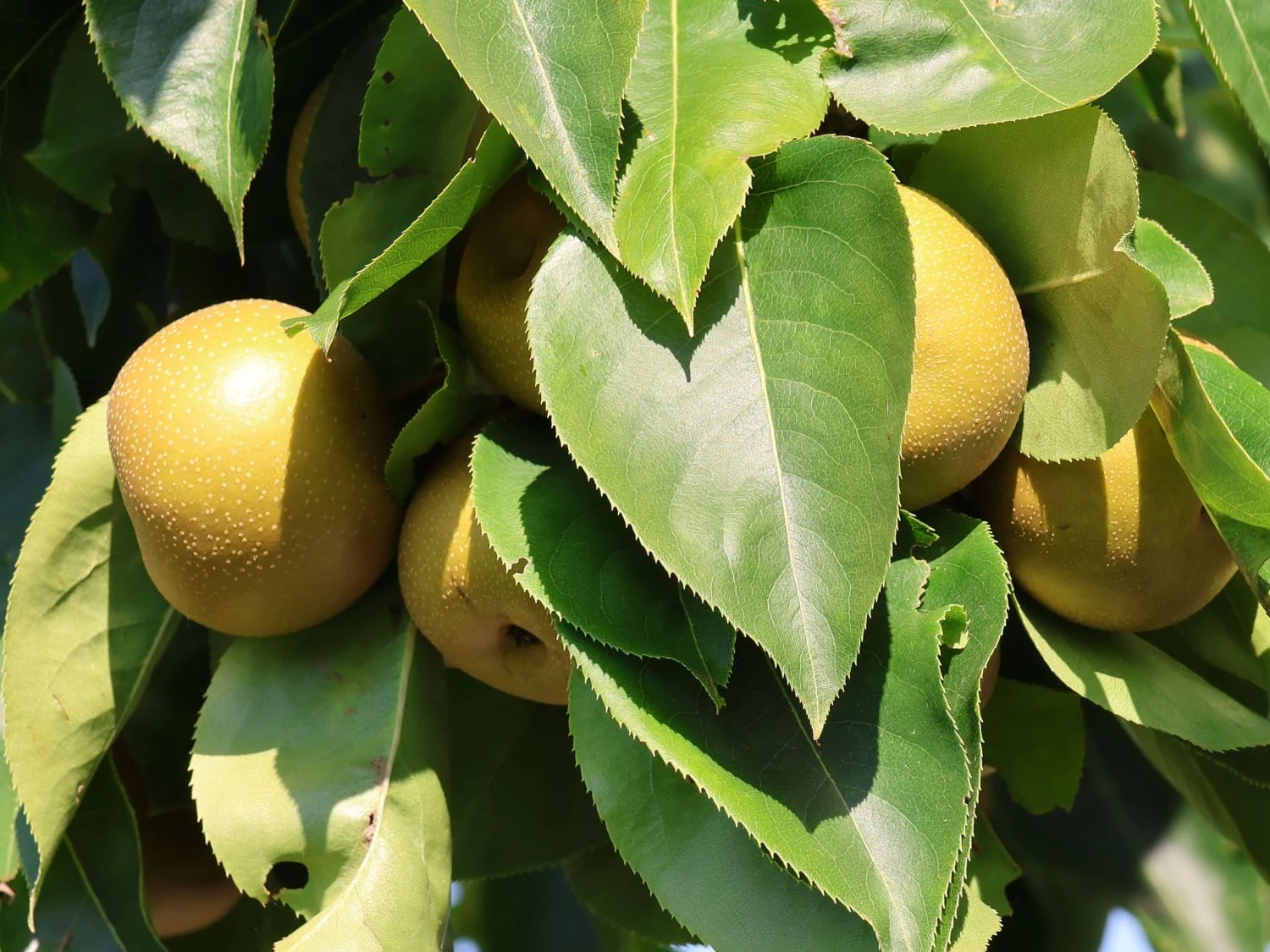 Zu den außergewöhnlichen Pflanzen unter den Obstsorten gehören die asiatischen Nashi-Birnen. Sie sind beliebt, bekannt und geschätzt. Eine unter ihnen ist die Nashi / Asienbirne / Asiatische Apfelbirne ‚Kumoi‘. Ihr Name kommt nicht von ungefähr, vereint die Asiatische Apfelbirne doch alle Vorzüge von Äpfeln und Birnen in sich. Dabei ist sie eine ganz exklusive Sorte unter dem Baumobst. Die Früchte sind ein Genuss und ein Geschmackserlebnis gleichermaßen. Außerdem besticht die Nashi, wie sie umgangssprachlich und in Kurzform genannt wird, mit ihren optischen Reizen. Niedlich wirkt diese Namensgebung und deutet darauf hin, was mit dieser Sorte möglich ist: Das gesunde Naschen im eigenen Hausgarten. Chinesische Apfelbirne oder einfach Asienbirne sind weitere Bezeichnungen für diesen außergewöhnlichen Fruchtspender. Aufrecht wächst die Pyrus pyrifolia ‚Kumoi‘, so der botanische Name der Pflanze, im Garten als Kleinbaum bzw. Kleinstrauch heran. Der Wuchs ist attraktiv. Bevorzugt steht die Asiatische Apfelbirne an einem voll sonnigen Standort im Garten. Hier kann sie ihre Früchte bestens ausbilden, sowie den angenehmen und außergewöhnlichen Geschmack ihrer Früchte ausbilden.