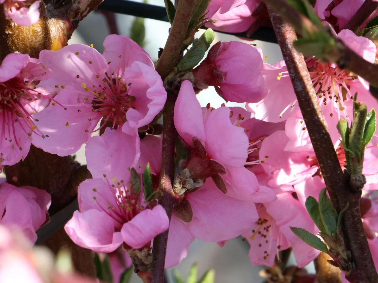 An heißen Sommertagen verlocken die glänzenden, gelbroten Früchte zum sofortigen Probieren. Ihr hellrotes Fruchtfleisch ist wunderbar saftig und erfrischend. Es schmeckt aromatisch süß mit einem Hauch spritziger Säure im Ausklang. Die Nektarine ‚Nectared‘ bereitet dem Gartenfreund mit ihren ausgezeichneten Früchten einen unvergleichlichen Genuss. Daneben ist sie mit ihrem eleganten Laub und dem rosaroten Blütenflor im Frühjahr ein wunderschönes Ziergehölz. Sie begeistert mit regelmäßigen, reichen Erträgen, ist pflegeleicht und zeichnet sich durch eine gute Winterhärte aus. Mit der geringen Größe eignet sich (bot.) Prunus nucipersica ‚Nectared‘ optimal für kleinere Gärten und Vorgärten. Als Solitärgehölz ziert das Gehölz Rasenplätze und Freiflächen. Vor weißen Mauern und Hauswänden wirkt die Pflanze ausnehmend schön. Prunus nucipersica ‚Nectared‘ wächst als kompakter, dicht verzweigter Kleinbaum. Ihre Höhe liegt zwischen 300 und 400 Zentimetern, die Breite beträgt 200 bis 300 Zentimeter. Pro Jahr legt sie 30 bis 50 Zentimeter zu. Bereits im zeitigen Frühjahr erfreut die Nektarine ‚Nectared‘ das Auge mit ihrer Blütenpracht. Von März bis April ist sie mit kleinen, rosaroten Blüten übersät, die lieblich duften. Bienen, Hummeln und Schmetterlinge lassen sich zur Nahrungsaufnahme auf den Blüten nieder. Das Gehölz bildet schmale, vorne zugespitzte, längliche, lanzettlich geformte Blätter aus. Sie schimmern in einem kräftigen Mittelgrün. Im Sommer leuchten zahlreiche Früchte aus dem dichten Laub hervor. Zunächst grün gefärbt mit einem Hauch von Rot, erstrahlen die reifen Nektarinen in einem satten Rot mit leichtem gelben Unterton. Sie besitzen eine glatte, glänzende Schale und hellrotes Fruchtfleisch. Ihre Erntezeit beginnt im August.