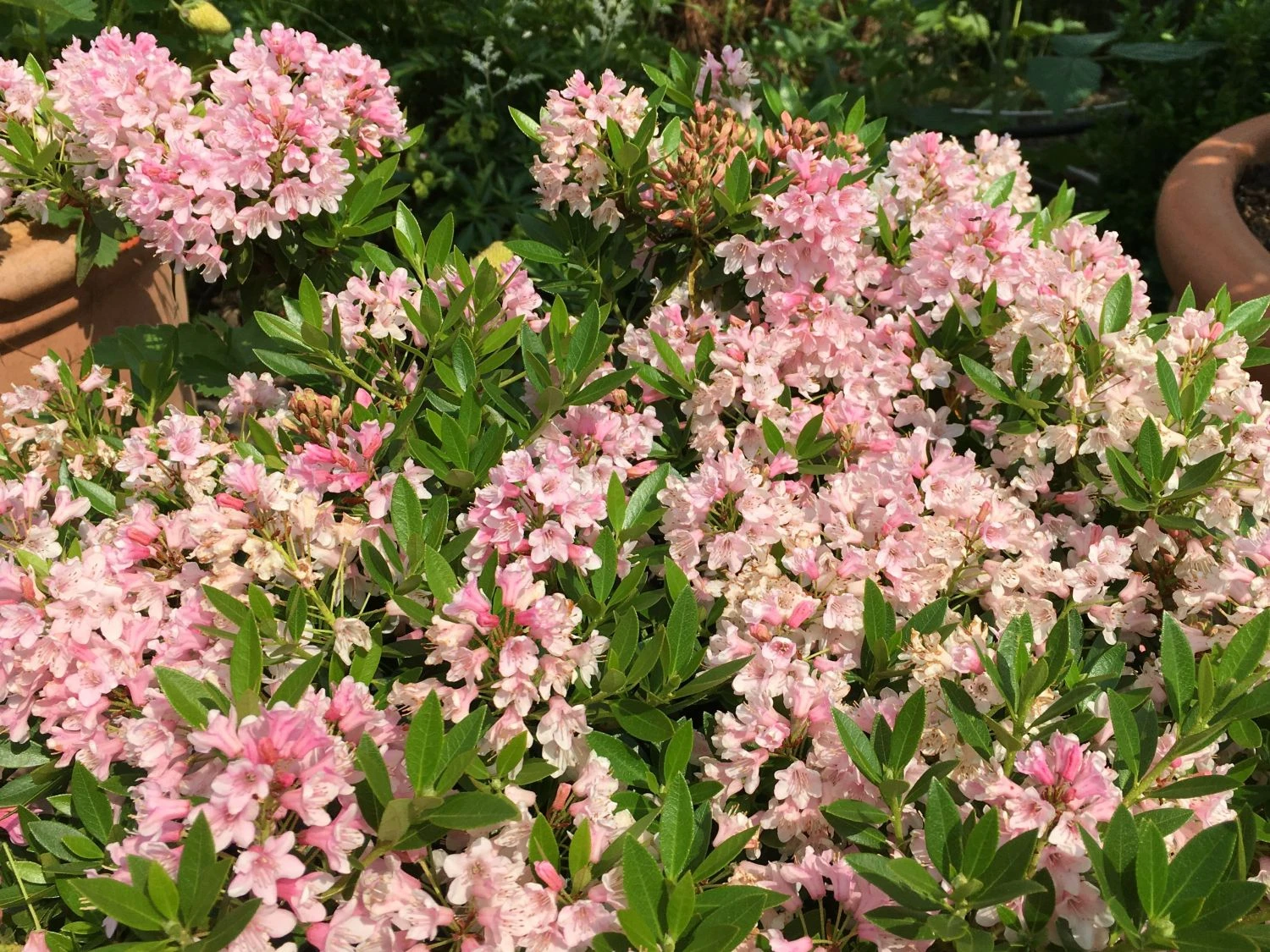 Mit dem Rhododendron ‚Bloombux‘ ® ist ein Kunstwerk kreiert worden, mit welchem die Gartengestaltung einen immergrünen, gut schnittverträglichen und zart rosa bis pink blühenden Gesellen dazugewonnen hat. Er ist die Alternative zum Buchsbaum und übertrifft diesen bei Weitem. Der Rhododendron micranthum ‚Bloombux‘ ® ist mit seinen Blüten eine Augenweide und setzt alles, was sich in seiner Nähe befindet, gekonnt in Szene. Ein rosafarbener Traum, der auch ohne Blüten überzeugt und entzückt. Mit seinem dichten und kompakten Wuchs ist die exklusive Züchtung eine gute Alternative zum Buchsbaum. Der Rhododendron ist absolut schnittverträglich und winterhart. Sein Laub ähnelt dem des Buchsbaums und zeichnet sich durch eine gute Blattgesundheit aus. Die kleinen und spitz zulaufenden Blätter haben beim Austrieb im Frühling eine herrlich frischgrüne Farbe. Im ausgereiften Zustand verfärben sie sich in ein angenehmes Grün. Besonders herausstechend ist dieses wunderschöne Laub im Juni, denn zu diesem Zeitpunkt schmückt den ‚Bloombux‘ ® eine üppige Blütenpracht. Zahlreich erscheinen die kleinen, rosafarbenen bis pinken Blüten, die dicht beieinander wachsen. Sie erzeugen in der Gesamtheit ein traumhaftes und beeindruckendes Blütenmeer. Bereits jüngere Pflanzen zeigen sich stark in der Blüte.