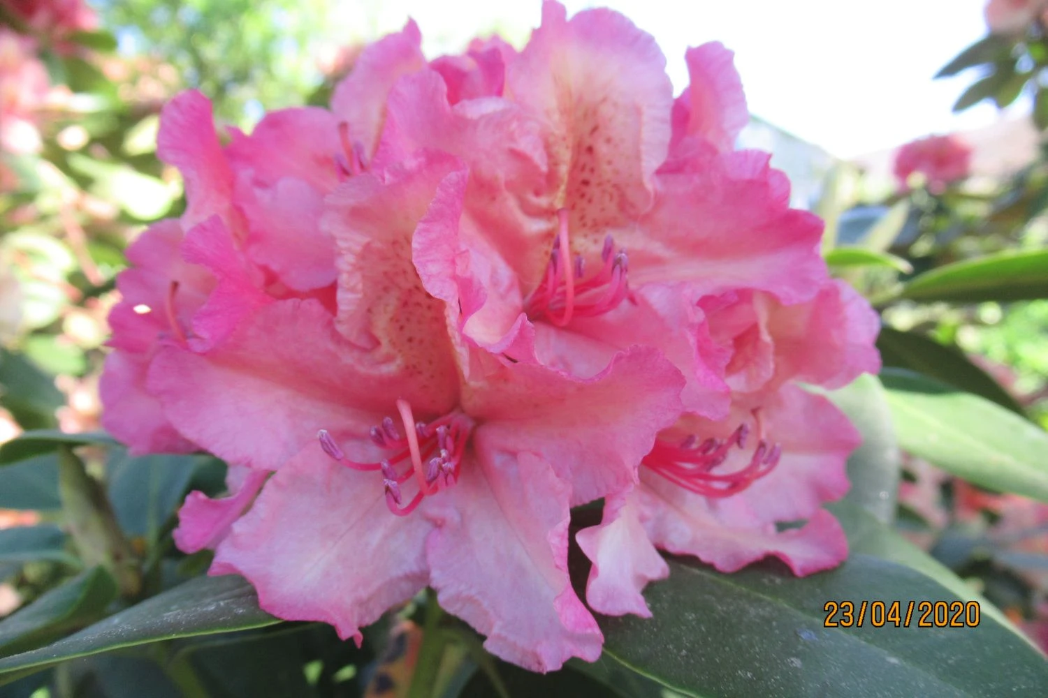 Schon früh, ab der zweiten Maiwoche, erstrahlen die herrlichen Blüten an diesem fantastischen Ziergehölz. Die Blütenblätter zeigen sich von außen in einem intensiven Orange und sind rosa geflammt. Sie sind leicht gekräuselt und wirken luftig und adrett. Im Inneren präsentieren sich die Blüten in einem helleren gelben bis orangen Farbton. Herrlich treten die roten Staubfäden aus der Mitte hervor und präsentieren sich auffällig. Die Einzelblüten von Rhododendron Hybride ‚Brasilia‘ erreichen einen Durchmesser von sechs bis sieben Zentimetern. Sie stehen in opulenten Blütenständen mit bis zu 18 Blüten zusammen. Besonders attraktiv erscheint der Farbwechsel im Verblühen. Die Blüten nehmen allmählich einen helleren Ton an und präsentieren sich bald dezent creme-orange gestreift. Auf das Schauspiel der verschiedenen Farbtöne freut sich der Gärtner ab dem Erscheinen der ersten Knospen. Schon ab dem 10. Mai bewundert er die Blütenpracht des Rhododendron ‚Brasilia‘ und verfolgt den Farbwechsel bis zum 2. Juli gebannt. Während dieser Blütentage stattet er dem schönen Ziergehölz regelmäßige Besuche ab und bleibt staunend vor dem tropischen Blütenkleid stehen. Beinahe überraschend wirkt bei einer solchen Exotik die gute Winterhärte des Strauches. Bis zu rund -24 °C überdauert ‚Brasilia‘ im Freien ohne zusätzlichen Schutz vor Frost.
