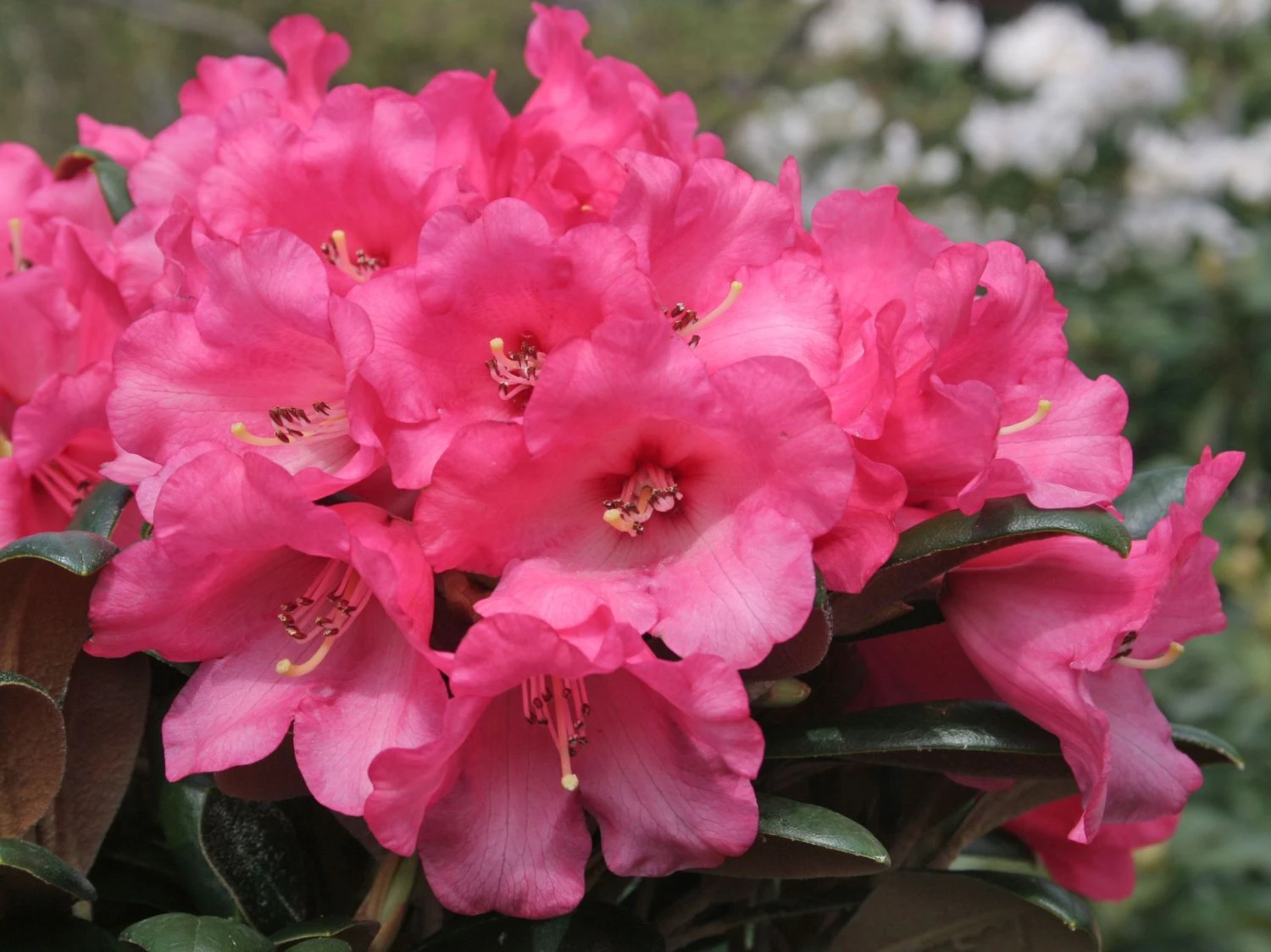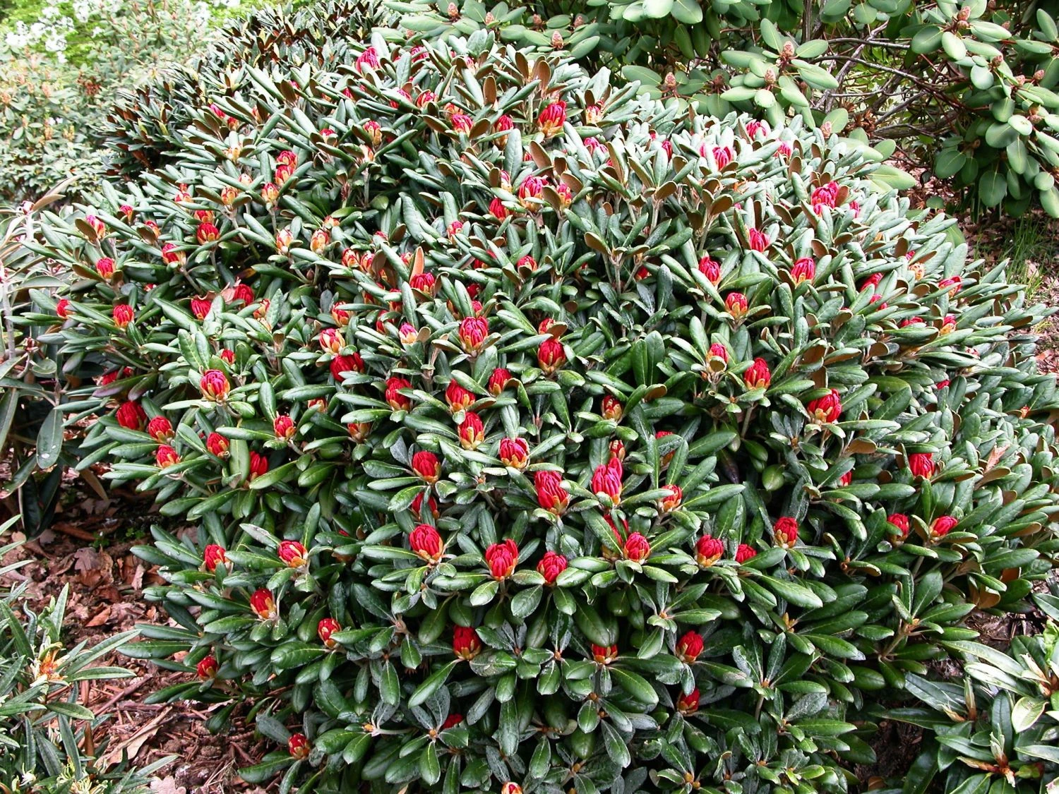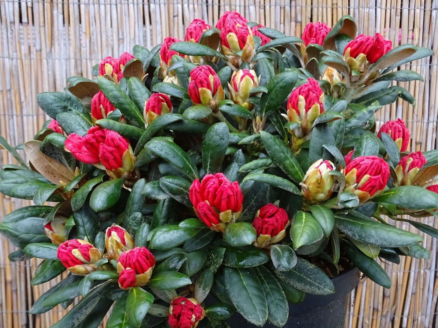 Der Rhododendron ‚Debbie Dane‘ ist ein blühendes Ziergehölz aus der Gruppe der sogenannten “Kleinen Wilden“. Während sich die Blütenknospen in einem zarten Lachsrot zeigen, öffnen sich die Blüten zu einem spektakulären roten Blütentraum. Neben den schönen Blüten präsentiert (bot.) Rhododendron yakushimanum ‚Debbie Dane‘ ein herrliches grünes Blattwerk, dass der Blütenpracht einen harmonisch abgestimmten Hintergrund verleiht. Die schönen Einzelblüten des Rhododendrons ‚Debbie Dane‘ erreichen einen durchschnittlichen Durchmesser von fünf bis sechs Zentimeter. Die glockenförmigen Blüten setzen sich aus fünf Blütenblättern zusammen und sind zur Basis hin offen. Zunächst leuchten die Blüten in einem hellen Karminrot. Während der Blütezeit, die etwa vom 09.05. bis 20.05. andauert, verflüchtigt sich der rote Farbton und die Blüten verblassen zu einem zarten Hellrosa. Durch diesen Vorgang des Verblassens scheinen die roten Basalflecken, die sich am Blütenboden befinden, noch deutlicher in Erscheinung zu treten. Jede Knospe bildet zwischen sieben bis elf Blüten aus. Die Knospen stehen in der Regel zu mehreren an den Triebenden und entwickeln sich zu dichten, kugeligen Blütenbüscheln. Diese erreichen eine Höhe von rund acht Zentimeter sowie eine Breite von bis zu zehn Zentimeter.
