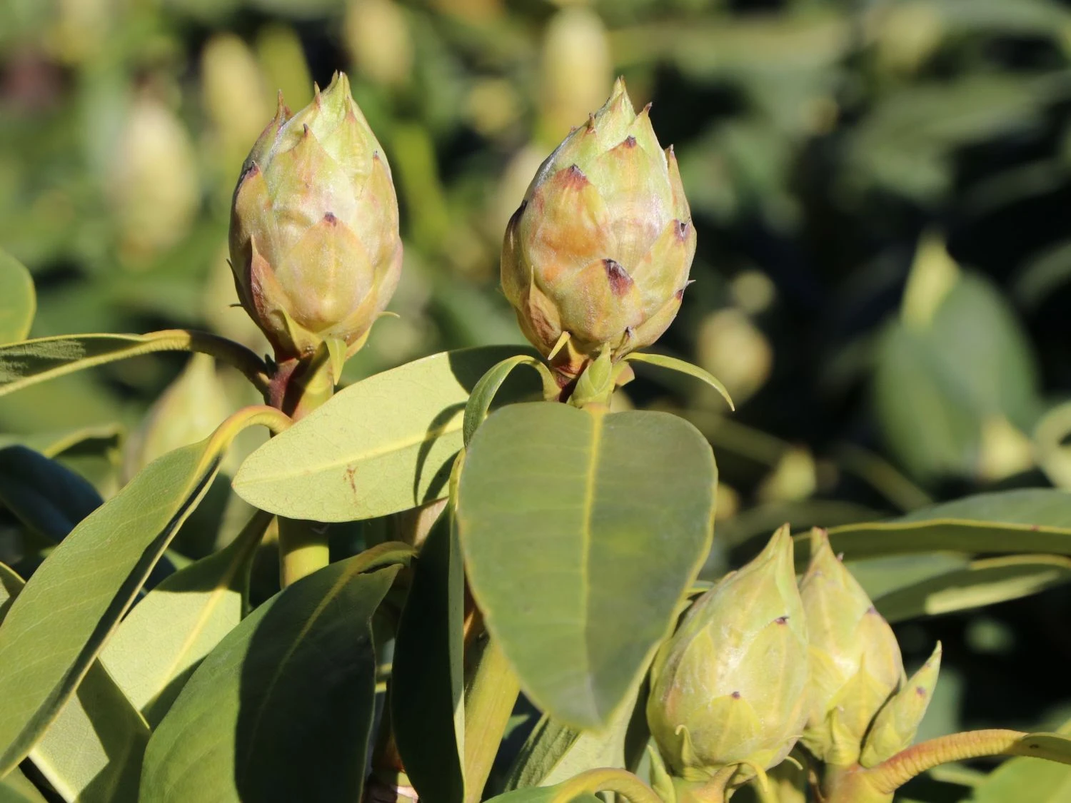 Das hellgrüne Laub ist das ganze Jahr über ein ansprechender Schmuck für den Rhododendron ‚Eskimo‘. Die elliptischen und leicht zugespitzten Blätter sind immergrün und machen es notwendig, die Pflanze auch im Winter an frostfreien Tagen zu gießen. Denn sie verdunsten kontinuierlich Wasser und der Strauch muss diesen Verlust über die Wurzeln ausgleichen. Der Rhododendron ‚Eskimo‘ ist ein Flachwurzler und bevorzugt ein konstant feuchtes Substrat. Der Boden ist idealerweise humos und locker mit einem pH-Wert im schwach sauren bis sauren Bereich. Daher ist Rhododendron Hybride ‚Eskimo‘ in einem Moorbeet bestens aufgehoben. Dort brilliert der Zierstrauch neben anderen Pflanzen wie Azaleen, Schattenglöckchen oder Berglorbeer. Der Rhododendron ‚Eskimo‘ hat einen dichten und rundlichen Wuchs. Nach circa zehn Jahren hat die Pflanze im Garten eine Wuchshöhe von rund 160 cm erreicht und zeigt sich in der Breite auf bis zu 150 cm. Diese Sorte ist gut winterhart und übersteht strenge Temperaturen von bis zu -24 °C ohne besonderen Schutz.