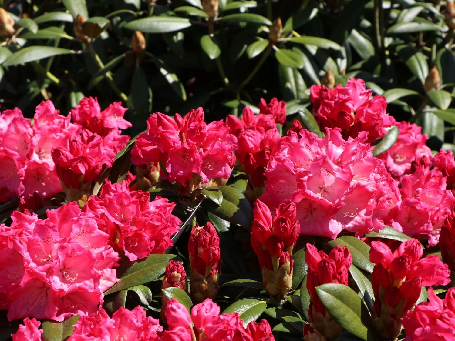 Der Rhododendron ‚Morgenrot‘ betört im Frühjahr das Auge des Betrachters mit reicher Blüte. Wenn um ihn herum im Garten noch wenig blüht, setzt der Strauch seine ersten bezaubernden Farbtupfer und kündet vom heraufziehenden Blütenmeer. Mitte Mai beginnt die Blüte des kompakt wachsenden (bot.) Rhododendron yakushimanum ‚Morgenrot‘. Innerhalb kurzer Zeit bedeckt er sich über und über mit einem intensiv roten Flor. Im Innern der ungezählten aparten Blüten geht das reine Rot in ein anmutiges Rosa über. Es ist durchzogen mit federleichtem Strich in einem rotbraunen Muster. Der Blühwille von Rhododendron yakushimanum ‚Morgenrot‘ ist derart mächtig, dass unter den traubenförmigen Blütenständen das schöne tiefgrüne Laub des Rhododendron ‚Morgenrot‘ nicht zu sehen ist. Wo es durchblitzt, zaubert es einen entzückenden Kontrast. Bis zum Ende des Wonnemonats Mai dauert das herrliche Feuerwerk aus Blüten an. Das Ziergehölz bevorzugt einen sonnigen Standort. Auch im lichten Halbschatten gedeiht es gut. Vollen Schatten beantwortet der Strauch mit einer geringeren Blütenmenge. An den Boden stellt die Pflanze einiges an Ansprüchen.