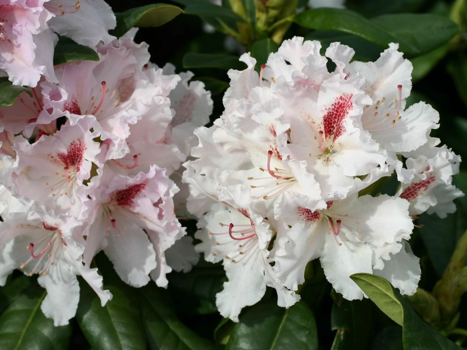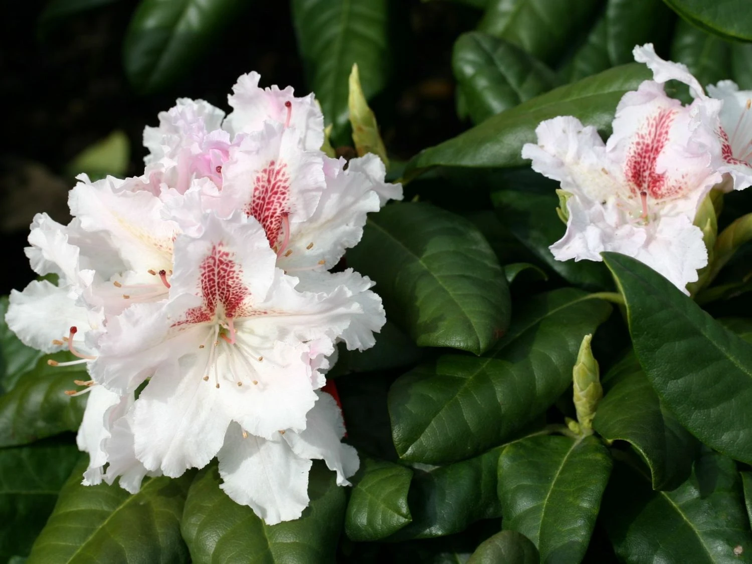 Der Rhododendron ‚Progres‘ ist ein kleiner, immergrüner, breitaufrecht wachsender Strauch. Er erreicht eine Höhe von ca. 1,2 m und hat einen Jahreszuwachs von ca. 6 cm. Seine Blätter sind frischgrün und leicht gewellt.