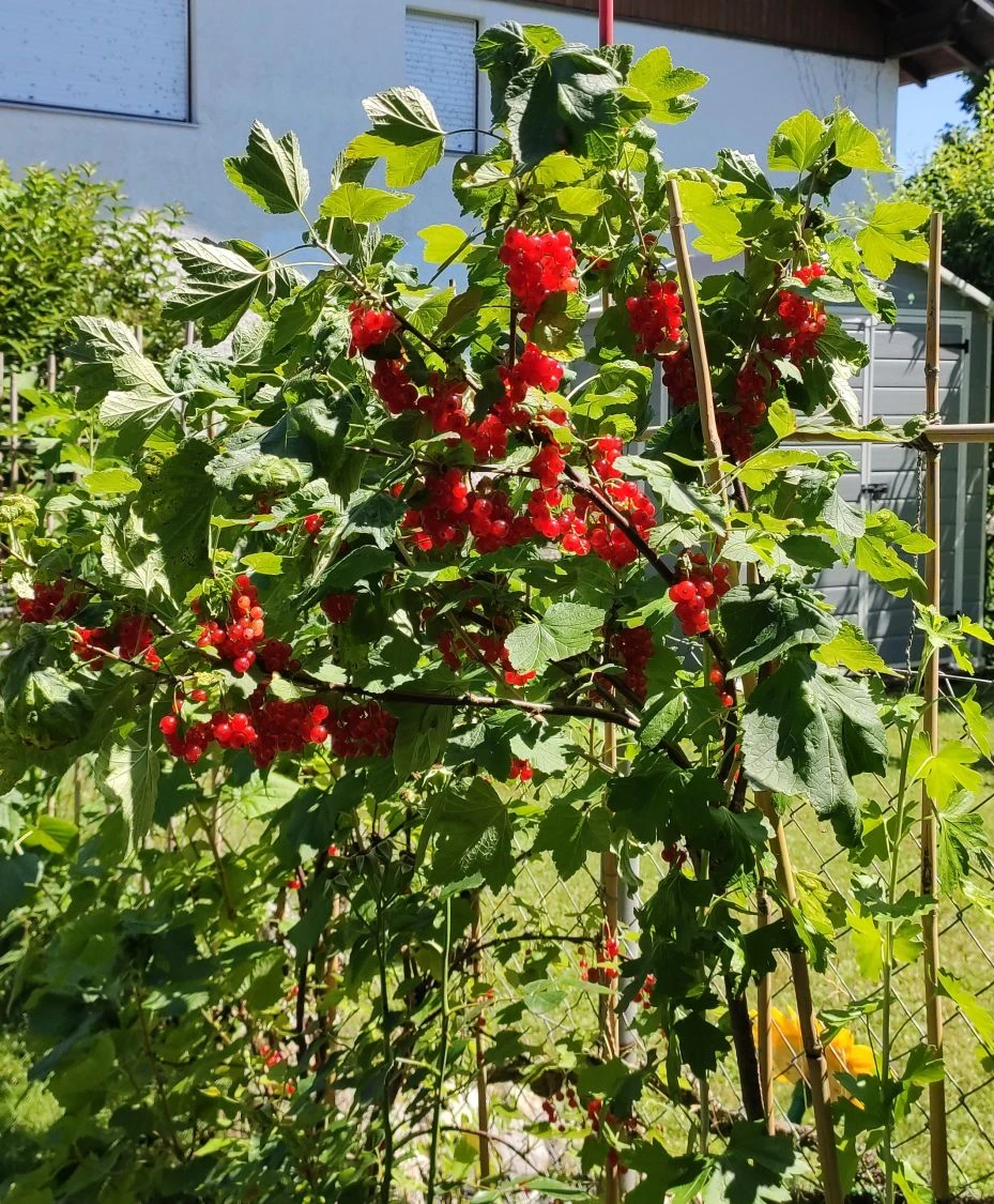 Die Rote Johannisbeere ‚Rovada‘ ist eine Spitzensorte aus Europa und erfreut sich großer Beliebtheit. Nicht ohne Grund. Denn mit ihren hervorragenden Eigenschaften ist (bot.) Ribes rubrum ‚Rovada‘ ein Zusatzgewinn für jeden Obstliebhaber und eignet sich optimal für den Hausgarten oder den Erwerbsanbau. Die Rote Johannisbeere ‚Rovada‘ ist eine späte und ertragreiche Sorte, die imposante langtraubige Rispen von bis zu 20 Zentimetern bildet. An ihnen hängen zahlreiche große, mittelrote Früchte mit festem Fruchtfleisch. Die Beeren der Roten Johannisbeere ‚Rovada‘ sind kräftig im Aroma und besitzen einen süß-säuerlichen Geschmack. Die Köstlichkeiten sind optimal für den Frischverzehr geeignet und bereichen jeden Kuchen oder Dessert. Auch weiterverarbeitet zu Marmelade, Grütze oder Saft sind sie eine Delikatesse und den Verwendungszwecken sind keine Grenzen gesetzt. Die Früchte halten sich lange am Stiel und sind leicht, in ihrer Erntezeit ab Mitte Juli, zu pflücken. Die Rote Johannisbeere ‚Rovada‘ ist sehr winterhart und trägt im ersten, spätestens im zweiten Standjahr ihre köstlichen Früchte. Sie verfügt über einen mittelstarken, buschigen bis breitbuschigen und aufrechten Wuchs. Damit erreicht sie eine Höhe von 100 bis 150 Zentimetern. Sie ragt bis zu 120 Zentimeter in die Breite. An einem optimalen Standort gedeiht die Rote Johannisbeere ‚Rovada‘ schnell mit 20 bis 40 Zentimeter pro Jahr. Ein sonniger bis halbschattiger, geschützter Bereich mit einem nährstoffreichen und durchlässigen Boden, bietet die besten Voraussetzungen. Je sonniger die Ribes rubrum ‚Rovada‘ steht, desto höher ist der Ertrag und die Intensität des Aromas. Zudem wirkt sich das Düngen im März, und ein weiteres nach der Blüte, positiv auf das Wachstum der Beeren aus. Hierfür ist am besten ein spezieller Beerendünger zu verwenden und nicht auf Hornspäne zurückzugreifen. Die alleine liefert nicht alle essentiellen Nährstoffe. Johannisbeeren sind selbstfruchtend und benötigen keinen Partner. Allerdings verspricht eine weitere Pflanze einen höheren Fruchtertrag.