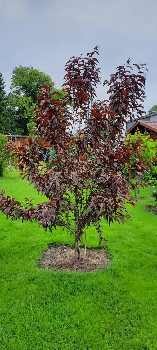 Mit diesem rotlaubigen Pfirsich bringen Sie Farbe in Ihren Obstgarten. Im Frühjahr erstrahlt der Baum in einem zarten rosa wenn die Blüten vor dem Laubaustrieb erscheinen. Danach schmückt sich dieser Obstbaum mit einem sehr dekorativem dunklem Laub bis in den Herbst hinein.