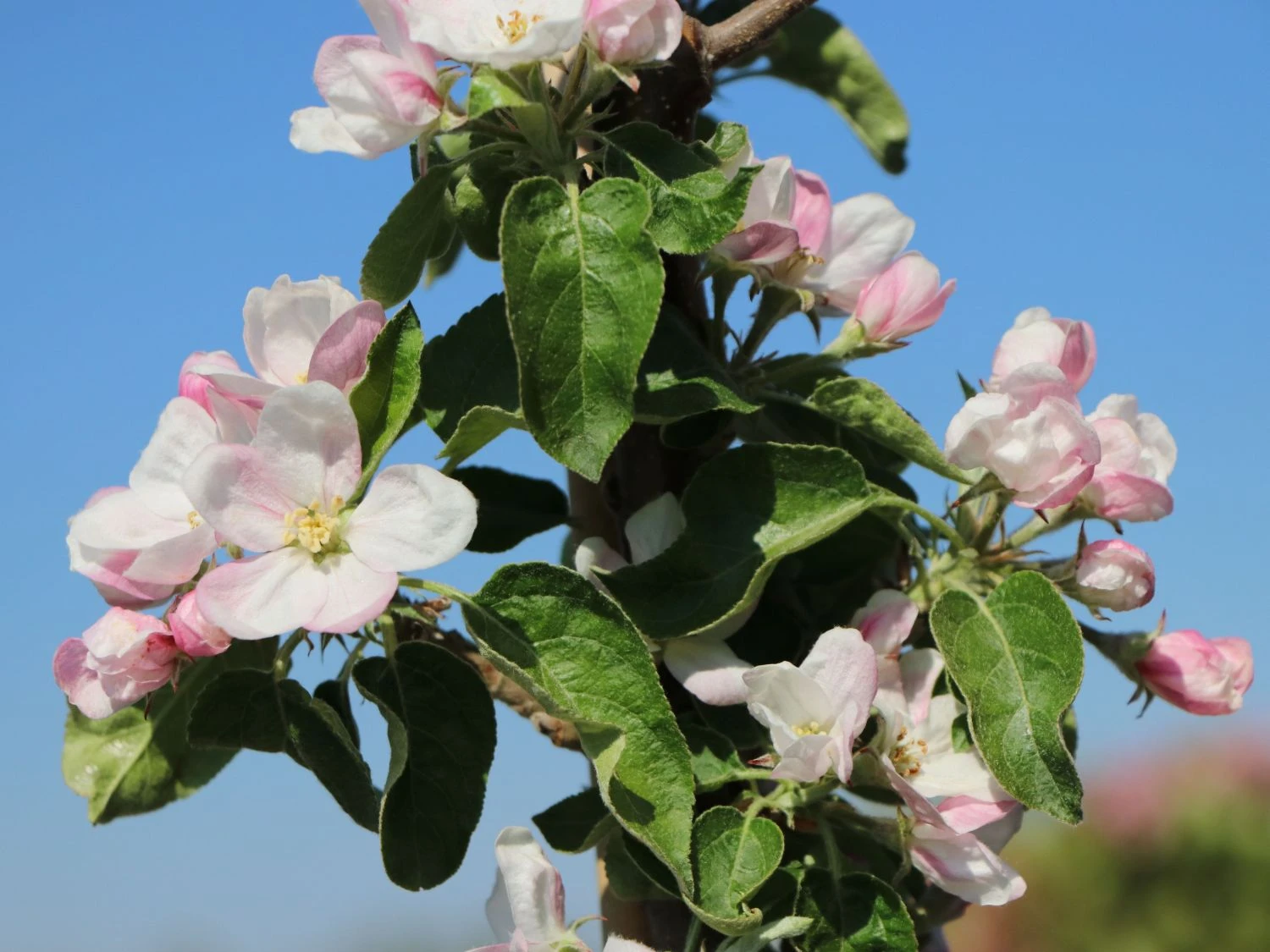 Ende April blüht der Säulenapfel ‚Greencats‘ mit weiß-rosa Blüten. Wie alle Apfelbäume benötigt er andere Befruchtersorten in der Nähe. Hierzu eignen sich andere Säulenapfelsorten wie ‚Goldcats‘ und ‚Redcats‘ oder Apfelbäume in der Nachbarschaft. So zierlich das Obstgehölz wirkt, ist sein Wesen robust und gesund. Diese Apfelsorte ist gegen die häufigsten Pilzkrankschäden immun. Ein aufwändiger Einsatz von Pestiziden entfällt bei der Kultur des Malus ‚Greencats‘ ®. An einem sonnigen bis halbschattigen Platz findet diese Apfelsorte beste Grundlagen für eine gute, reiche Ernte. Apfelbäume lieben einen frischen, tiefgründigen Boden mit einem guten Humusanteil. Eine gute Bodenqualität wirkt sich immer positiv auf das Wachstum und den Ernteertrag aus. Wird der Säulenapfel ‚Greencats‘ in einem Kübel kultiviert, ist im Sommer eine regelmäßige Kontrolle der Bodenfeuchte notwendig. Wasser ist für einen Apfelbaum lebensnotwendig. Der Baum hält seine schlanke Form auch ohne Rückschnitt.