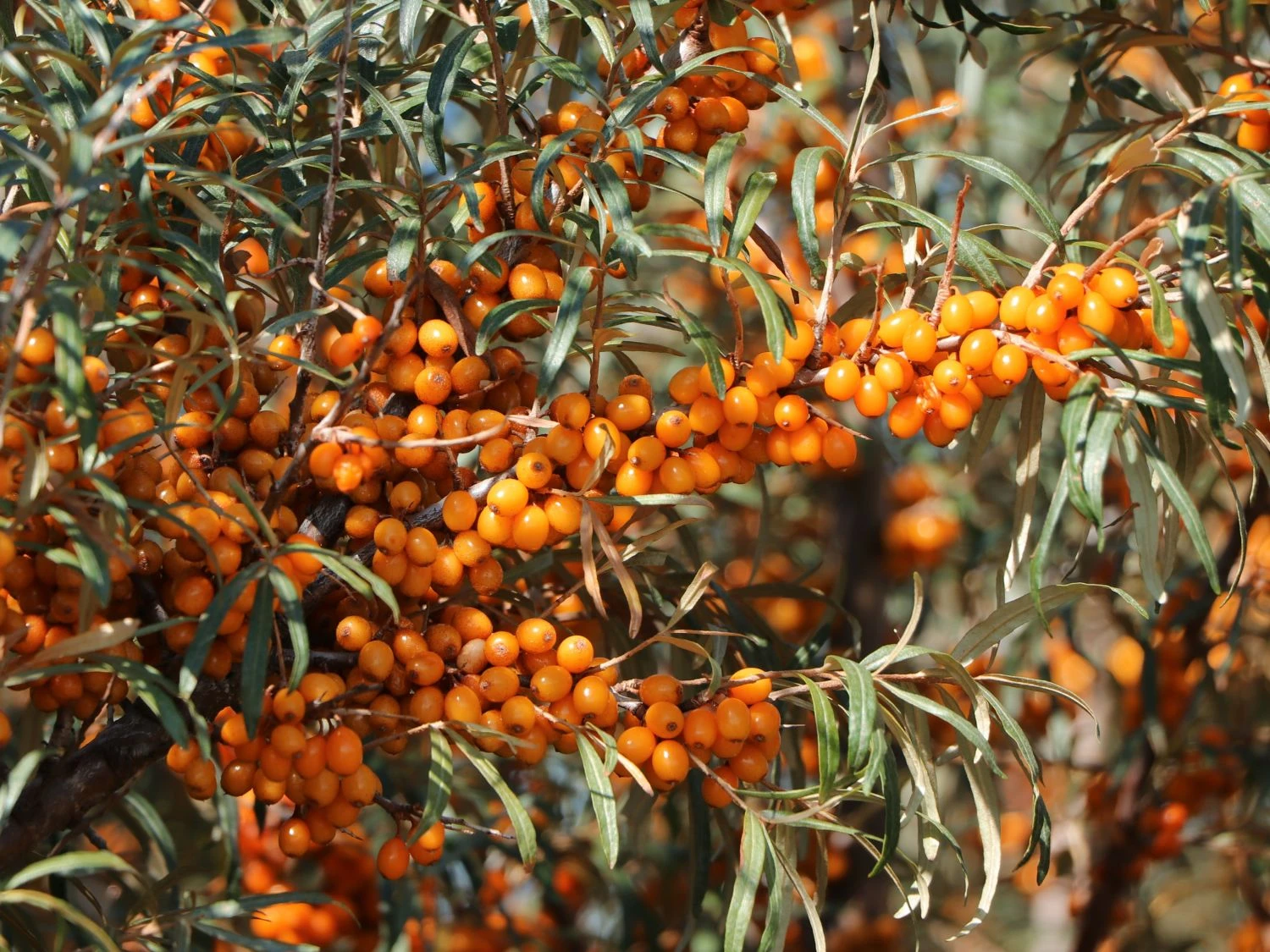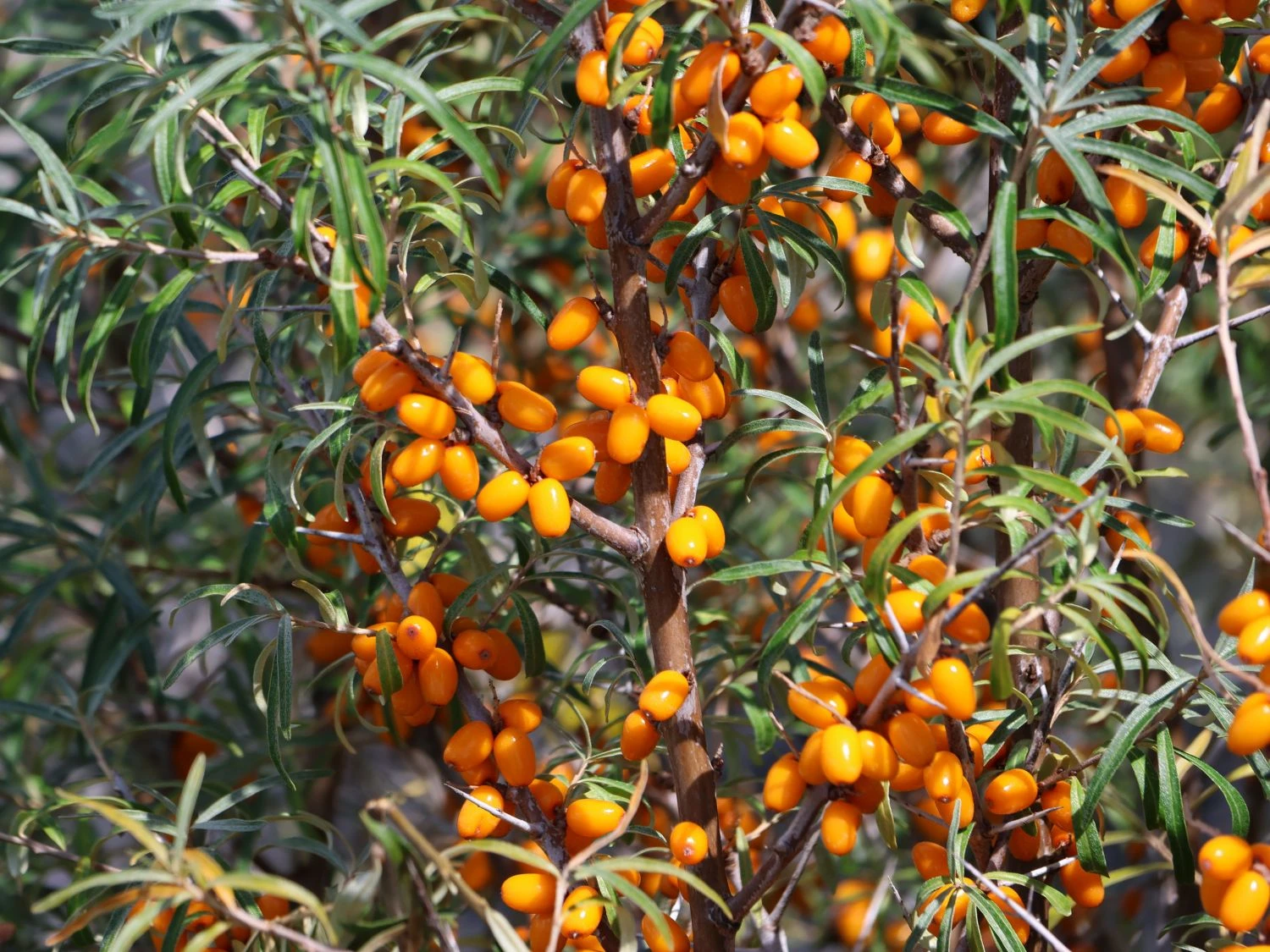 Der Sanddorn weiblich ‚Leikora‘ erfüllt viele Wünsche des Gärtners und bietet viel Nahrung für heimische Vögel. (Bot.) Hippophae rhamnoides ‚Leikora‘ benötigt einen männlichen Partnerstrauch in der näheren Umgebung, um sich nach der Blüte mit den schönen Früchten zu schmücken. Dieser anspruchslose Strauch gedeiht ohne große gärtnerische Pflege. Er wächst aufrecht und kompakt mit vielen Verzweigungen und wird drei bis vier Meter hoch. Hippophae rhamnoides ‚Leikora‘ liebt einen sonnigen und lichtdurchfluteten Standort. Leichten Halbschatten verträgt er bei sonst guten Standortbedingungen. Sandiger, trockener Boden, der nährstoffarm und gut durchlässig ist, sorgt für ein gutes Wachstum. Ein jährlicher Rückschnitt ist nicht zwingend nögig. Eher empfiehlt sich ein regelmäßiges Auslichten und jedes zweite Jahr ein behutsamer Schnitt. Das kann an frostfreien Tagen ganzjährig erfolgen, hält den Strauch in Form und verhindert das Verkahlen von innen.