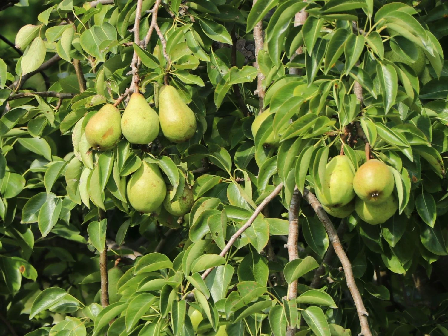 Die Blüte der Sommerbirne ‚Muskateller‘, ‚Aurate‘ ist relativ früh. Die Blüten sind unempfindlich gegen Wind und Wetter. Um die Erträge zu regulieren und die Fruchtgröße positiv zu beeinflussen, ist es ratsam, die Fruchtansätze direkt im Anschluss an die Blüte auszudünnen. Pyrus communis ‚Muskateller‘ / ‚Aurate‘ zeigt sich recht anspruchslos im Bezug auf den Boden und das Klima. Das pflegeleichte Obstgehölz ist auch in höheren Lagen noch gut anbaufähig. Allerdings sind die Erträge in warmen Lagen und auf nährstoffreichen Böden deutlich höher und regelmäßiger. Aufgrund der Alternanz trägt das Gehölz seine Früchte in der Regel nur alle zwei Jahre. Ab Mitte August sind die Früchte der Sommerbirne ‚Muskateller‘, ‚Aurate‘ reif und die Ernte beginnt. Die Birnen sind für rund zehn Tage lagerbar. Danach beginnen sie zu schrumpfen und das Fruchtfleisch nimmt eine teigige Konsistenz an. Dieses großartige Gehölz wächst auf eine Höhe von 250 bis 450 Zentimeter heran. In der Breite entwickelt sich die Sommerbirne ‚Muskateller‘, ‚Aurate‘ auf 200 bis 300 Zentimeter. Jährlich entwickelt die Sorte einen Zuwachs von 30 bis 50 Zentimeter in Höhe und Breite.