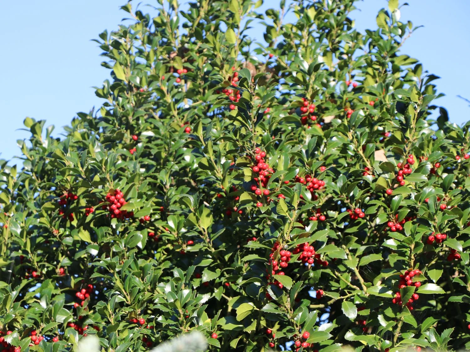 Von Mai bis Juni ist die Zeit des ersten glanzvollen Auftritts des Ilex meserveae ‚Heckenfee‘ (S). Jetzt erscheinen seine Blüten. In grün und weiß erstrahlen diese in dem dunkelgrünen Laub. Die Blüten setzen wunderschöne, kontrastreiche Akzente in der dunklen Belaubung. Im Anschluß an die Blüte bildet sich der Fruchtansatz. Die Stechpalme ‚Heckenfee‘ (S) entwickelt leuchtend rote Beeren. Jedoch gibt es einen Haken. Der weibliche Ilex braucht einen männlichen Befruchter um Früchte entwickeln zu können. Hier bietet sich die Sorte ‚Heckenstar‘ an. Ilex meserveae ‚Heckenfee‘ (S) bildet traumhafte formelle Hecken. Allerdings benötigt der Gärtner Geduld. Die Entwicklung zur blickdichten Hecke dauert mehrere Jahre. Für den Rückschnitt sind Handschuhe und Schutzkleidung empfehlenswert. So schützt sich der Gärtner gegen die stacheligen Blätter. Die Beeren sind ebenso wie die übrigen Teile der Pflanze giftig. Deshalb sind die Früchte alleine für den optischen Genuss sowie für Dekorationszwecke zu verwenden. In modernen und formalen Gärten eignet sich Ilex meserveae ‚Heckenfee‘ (S) ideal für Formgehölze und Hecken. In Wald- und Japangärten präsentiert die ‚Heckenfee‘ ihre Schönheit. Ihre Blätter glänzen wunderschön im Sonnenlicht. Als Hausbaum im Vorgarten macht sie eine tolle Figur. Diese einmalig dekorative Pflanze eignet sich für die Bepflanzung im Kübel und als geformte Pflanze zum Bewundern. Ebenso bietet sich der Ilex meserveae ‚Heckenfee‘ als Unterpflanzung von Gehölzen an. Besonders im Winter ist seine immergrüne Belaubung, in der Kombination auch mit anderen immergrünen Pflanzen, ein Blickfang. Gesellige Pflanzpartner sind hier Efeu, Buchsbaum, Kirschlorbeer, Eibe oder Mahonie. Der Ilex (Stechpalmen) ist unter vielen anderen Namen bekannt. Beispielsweise als Winterbeeren, Hülsdorn, Stechhülsen oder Christdorn. Sie sind die einzige Pflanzengattung innerhalb der Familie der Stechpalmengewächse. Viele Arten und Sorten finden ihre Verwendung in Gärten und Parks als Zierpflanzen. Als Weihnachtsdekoration werden die Zweige mit den schönen roten Früchten in Nordamerika, Großbritannien und Frankreich verwendet. In Mitteleuropa werden sie zunehmend populär.