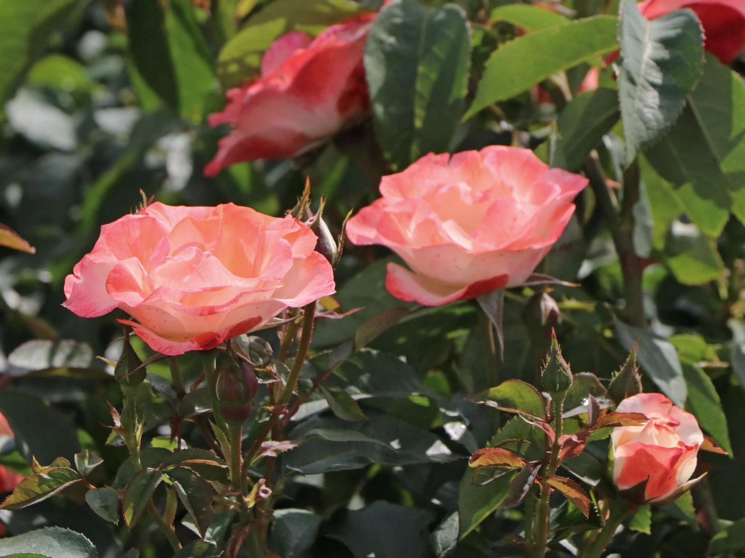 Inmitten der grünen Blätter sitzen die dunkelrosa Knospen der Strauchrose ‚Auf die Freundschaft‘ ®, die sich zu zauberhaften Blüten öffnen. Diese sind weiß und schimmern an den Enden in einem kräftigen Rot. Die Blütenpracht dieser Strauchrose ist von faszinierender Schönheit. Auch ihr zarter Duft umschmeichelt die Sinne. ‚Auf die Freundschaft‘ ® stammt aus dem Jahr 2016 und ist eine Neuzüchtung des bekannten Rosenunternehmens Kordes‘ Söhne. Die wunderschöne Strauchrose ist wuchsfreudig und erreicht eine Höhe von bis zu 120 Zentimetern. Die (bot.) Rosa ‚Auf die Freundschaft‘ ® ist eine öftersblühende Rosenschönheit Sie erfreut das Gärtnerherz den ganzen Sommer hindurch. Schon der Name macht diese zauberhafte Rose zu einem perfekten Geschenk für Jubiläen oder Geburtstage. Auch als einfache Aufmerksamkeit, wenn es um das Thema Freundschaft geht, ist sie eine perfekte Wahl.