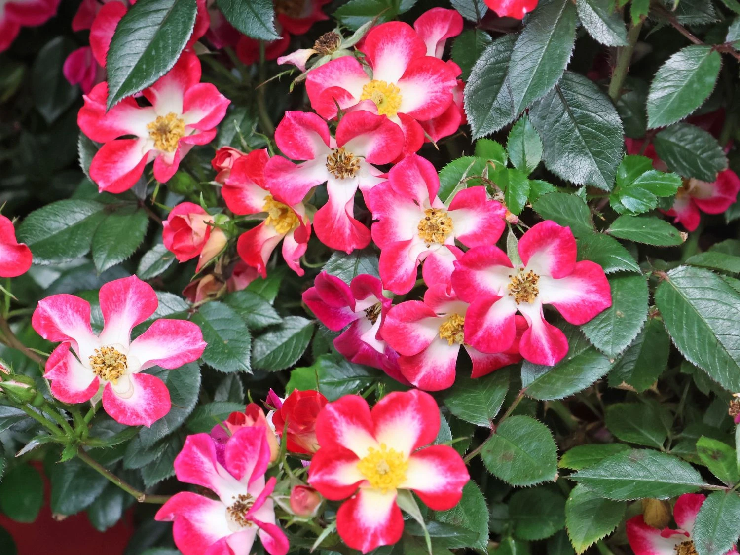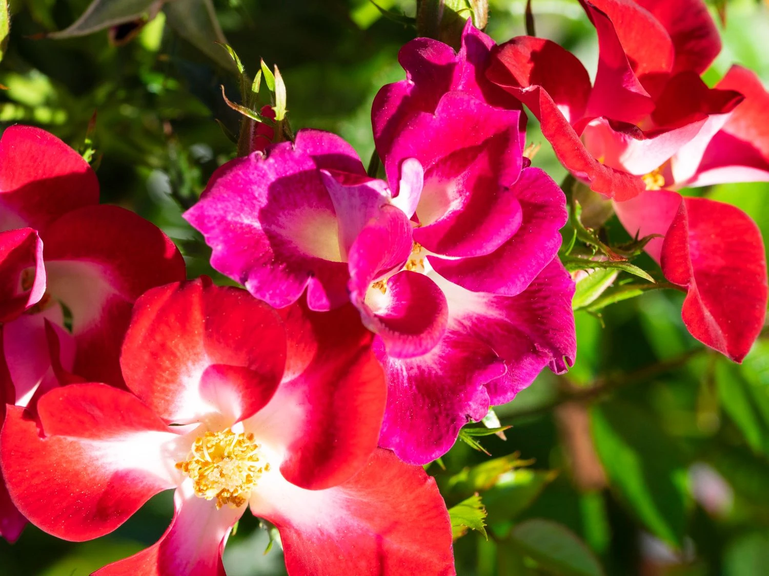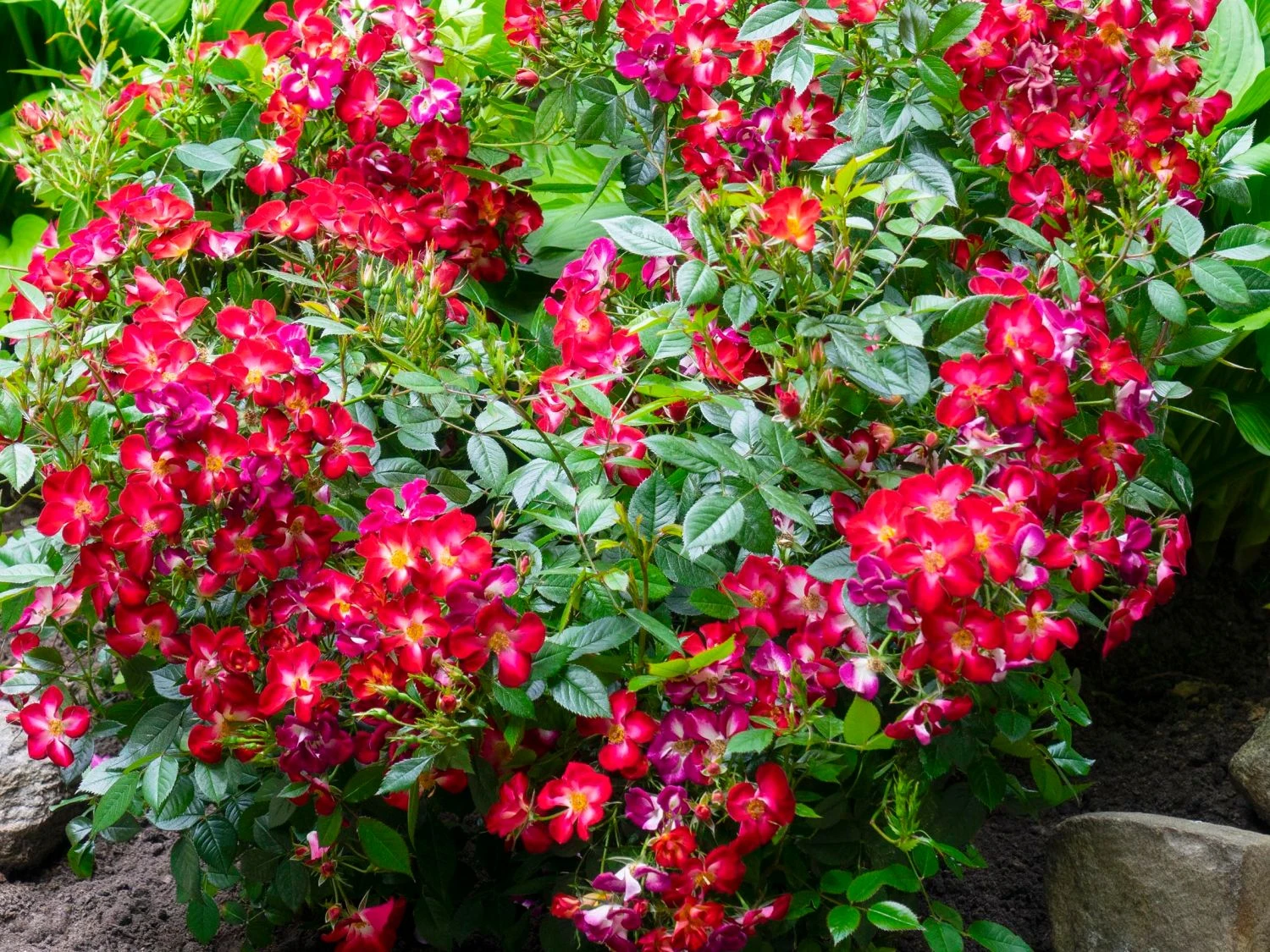 Die Strauchrose Rosy Boom ® ‚Colour Change‘ ist die perfekte Rose in einem naturnahen Garten, der Bienen, Hummeln und anderen Insekten gerne ein nahrhaftes Zuhause bietet. Mit (bot.) Rosa Rosy Boom ® ‚Colour Change‘ bedeutet nicht nur einen ökologischen Mehrwert in den Garten, denn diese besondere Sorte hält, was ihr Name verspricht: die Blüten erscheinen in wechselnden Farben. In der Zeit von Juni bis August erscheinen unzählige, kleine Blüten an dem kompakten Strauch, der eine Höhe von 80 bis 100 Zentimeter sowie eine Breite von bis zu 40 Zentimeter erreicht. Die Farben der Blüten der Strauchrose Rosy Boom ® ‚Colour Change‘ changieren zwischen rot, pink und lila und sorgen für einen attraktiven Anblick. Die halbgefüllten Blüten sind schalenförmig und laden hungrige Insekten Tag für Tag zu einem köstlichen Nektarmenü ein, dass die Nützlinge gerne nutzen. Die Blüten sind nicht nur wunderschön anzusehen, daneben verströmen sie auch noch einen angenehmen Duft. Diese zauberhafte Strauchrose verströmt pure Sommerlaune.