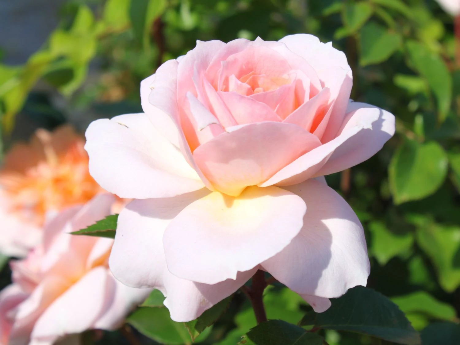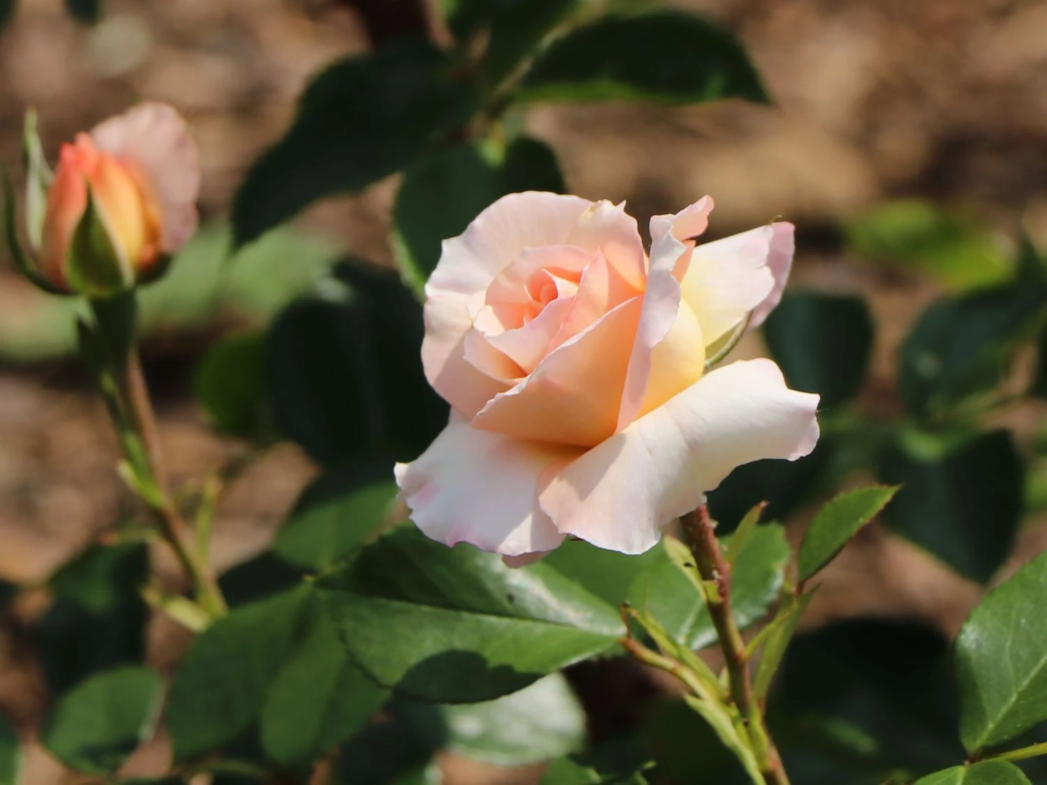 Zu einer Führung der ganz besonderen Art lädt Sie die gefüllte Strauchrose ‚Schloss Eutin‘ ® ein. Diese öfterblühende Mutation der Sorte ‚Bremer Stadtmusikanten‘ zeigt sich zart apricotfarben, die gefüllten Blüten sind in der Mitte etwas dunkler getönt. Die Luft wird erfüllt mit einem leichten Duft.