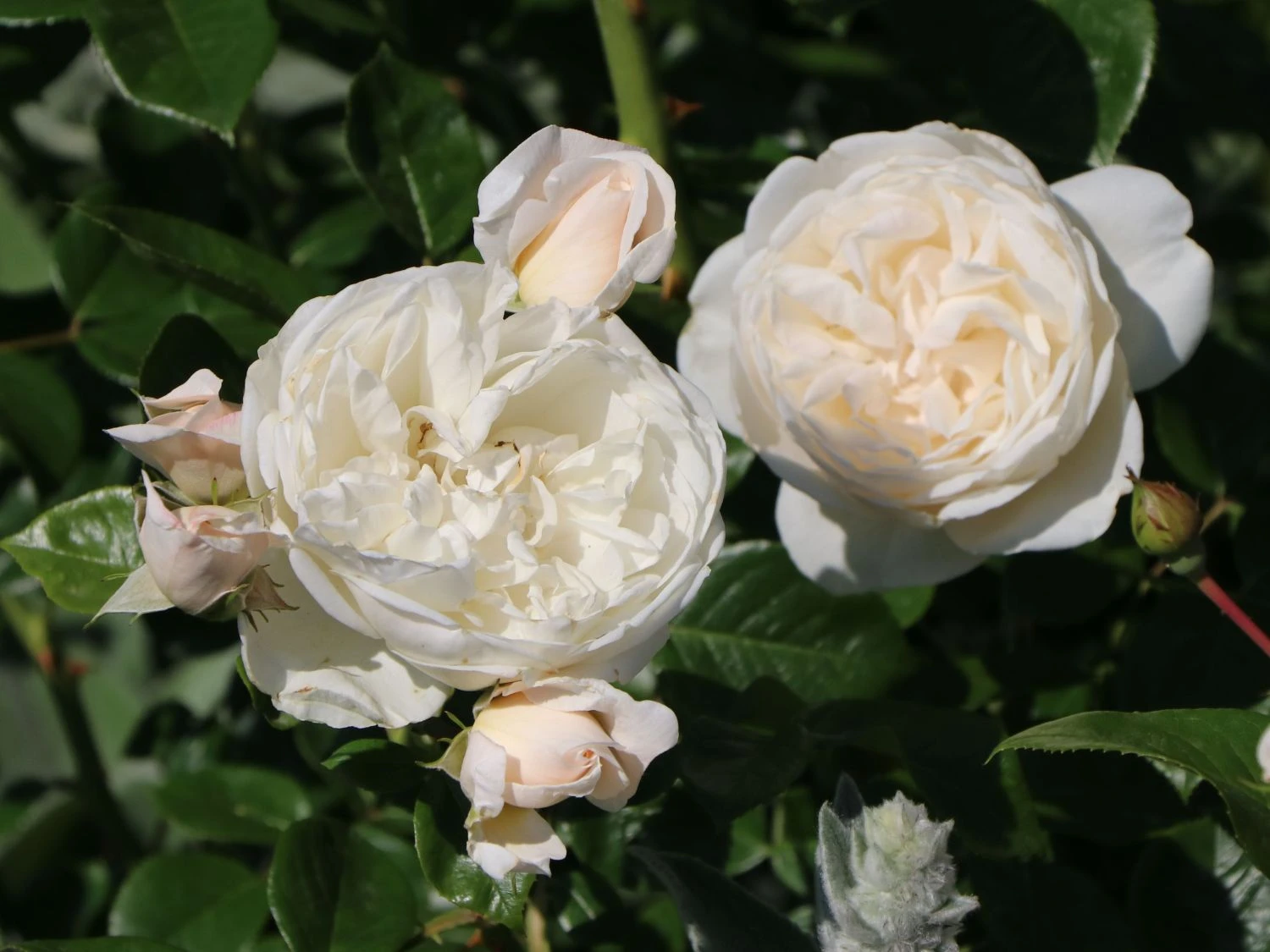 Gedanken an Vergangenes können so wunderschön sein, das beweist die Strauchrose ‚Summer Memories‘. Diese cremeweiße Sorte mit den nostalgisch gestalteten, gefüllten Blüten erfreut sich einer extremen Blattgesundheit.