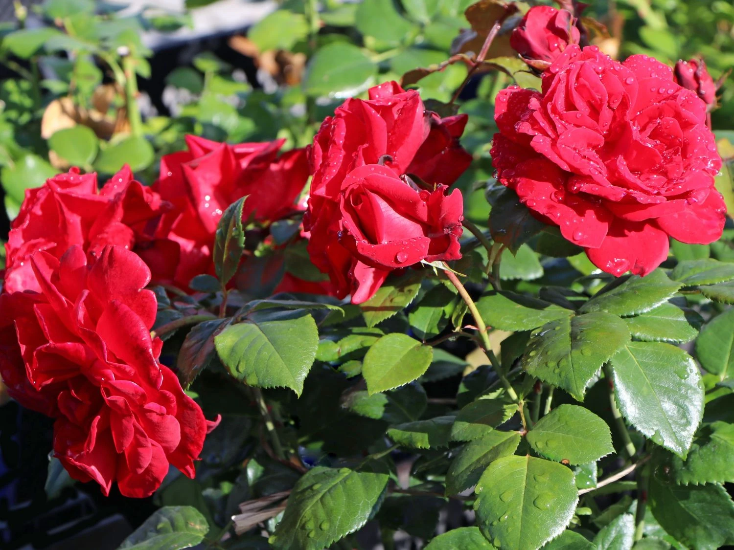 Dieser Schatz im Beet zeigt sich bei aller Pracht robust und pflegeleicht. Ihr pflegeleichtes Wesen macht sie zu einer tollen Pflanze für Gartenanfänger und Experten. Der üppige Blütenflor macht sie zu einer weltweit beliebten Rosensorte. Dieser Liebling genießt im Beet oder Kübel einen sonnigen bis halbschattigen Standort. Rosa ‚Ulmer Münster‘ ist winterhart und benötigt im Winter keinen besonderen Schutz vor Frost. Während der Blütezeit verzaubert der zarte Duft nach wilden Rosen den Garten. Am besten gedeiht die Rosa ‚Ulmer Münster‘ ® in lockerem, humosem, tiefgründigem Boden, der schwach alkalisch bis schwach sauer ist. Neben den leuchtenden Blütenblättern überzeugen die dunkelgrünen glänzenden Blätter der Rose. Der laubabwerfende Rosenstrauch bietet einen schönen Herbstflor. Zwei bis drei Pflanzen füllen einen Quadratmeter gut aus. Sie zaubern als Gruppe, mit ihren tiefroten großen Blüten und ihrem dunklen üppigen Laub, die pure Romantik in den Garten und in die Parkanlage. Das buschige und starktriebige Gedeihen erreicht innerhalb kurzer Zeit einen Durchmesser von bis zu einem Meter. Bis zu 170 Zentimeter wächst dieser Blütentraum in die Höhe. Der schöne Wuchs dieser Sorte erlaubt das Einsetzen als Hecke in Blumengärten. Die wunderschönen Blütenblätter sind die perfekte Dekoration von festlichen Tafeln. Langstielige Exemplare sorgen in der Vase für einen unglaublichen Anblick. Der Rosenstrauch wächst buschig und blüht öfter im Jahr. Die elegante Strauchrose ‚Ulmer Münster‘ ® sorgt im Garten und im Haus für viel Freude. Diese Rosensorte gehört zu den Strauchrosen, die in vielen Rosarien dieser Welt zu sehen ist. Auch im Rosengarten Ulm hat sie ihren Platz gefunden. Reimer Kordes benannte seine schöne Zucht nach dem höchsten Kirchturm der Welt, dem Münster in Ulm. Die Rosa ‚Ulmer Münster‘ ® begeistert aus der Ferne mit einem wahren Feuerwerk an blutroten Blüten. Die Einsetzen von drei Rosensträuchern im Dreieck bildet in vielen Gärten einen spektakulären Anblick. Die blutroten Blüten wirken wie ein loderndes und leuchtendes Feuer inmitten der anderen Blumen.