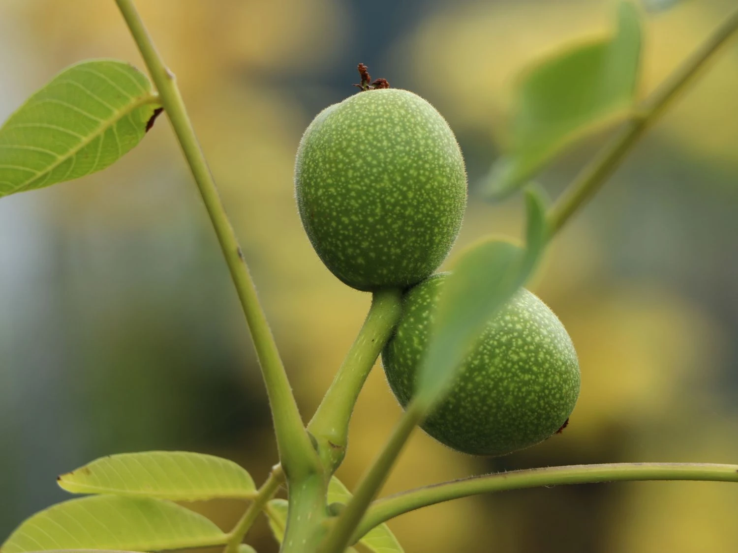 Die Walnuss ‚Seifersdorfer Runde‘ Veredelung ist ein mittelgroßer Baum, der perfekt dem Klima in Deutschland angepasst ist. Aus dem Jahr 1949 stammt diese schöne Sorte aus Seifersdorf (Dippoldiswalde) in der Sächsischen Schweiz. Der (bot.) Juglans regia ‚Seifersdorfer Runde‘ erreicht eine Höhe von vier bis acht Metern und entwickelt eine breite Krone. Der veredelte Walnussbaum ist wesentlich kleiner als Sämlinge und eignet sich wunderbar für kleinere Gärten. Die Blätter sind dunkelgrün und stehen wechselständig. Sie sind unpaarig gefiedert und statten sich mit sieben gegenständigen Fiederblättchen aus. Sie sind elliptisch und ganzrandig. Ihre Größe variiert. Die Blätter fallen im Herbst früh ab. Walnüsse stammen ursprünglich aus Vorder- und Mittelasien. Sie sind seit Jahrtausenden eine beliebte Nahrungsergänzung. Sie breiteten sich vornehmlich durch die Griechen im Mittelmeergebiet sowie dem Balkan aus. Es waren die Römer, die die Kultivierung der Walnuss förderten und nach Mitteleuropa brachten. Auch das Holz der Walnuss ist beliebt. Es findet als Edelholz im Möbelbau seine vielseitige Verwendung.