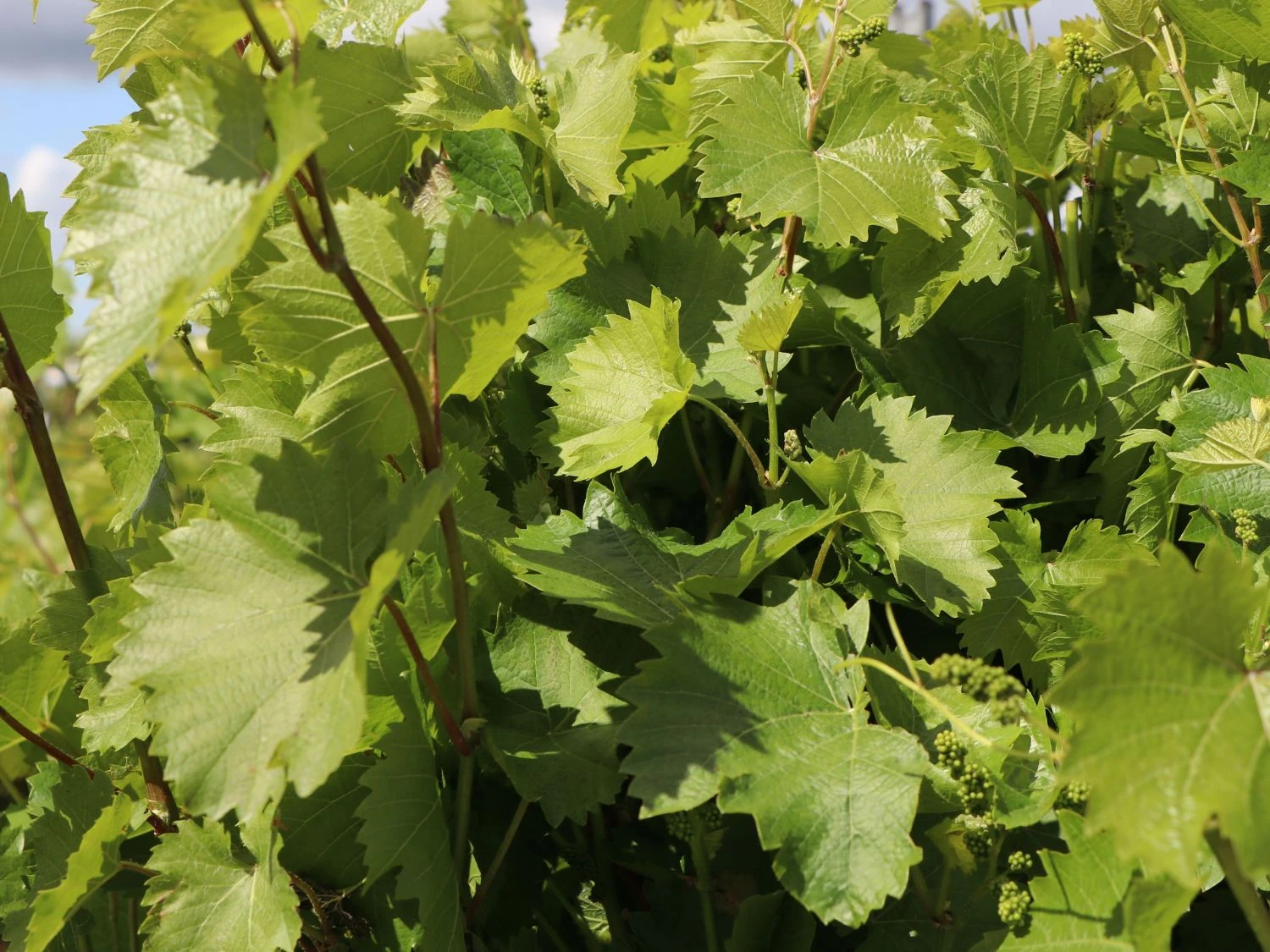 Die Höhe und Breite der Weinreben wird weitgehend von der Kletterhilfe bestimmt.