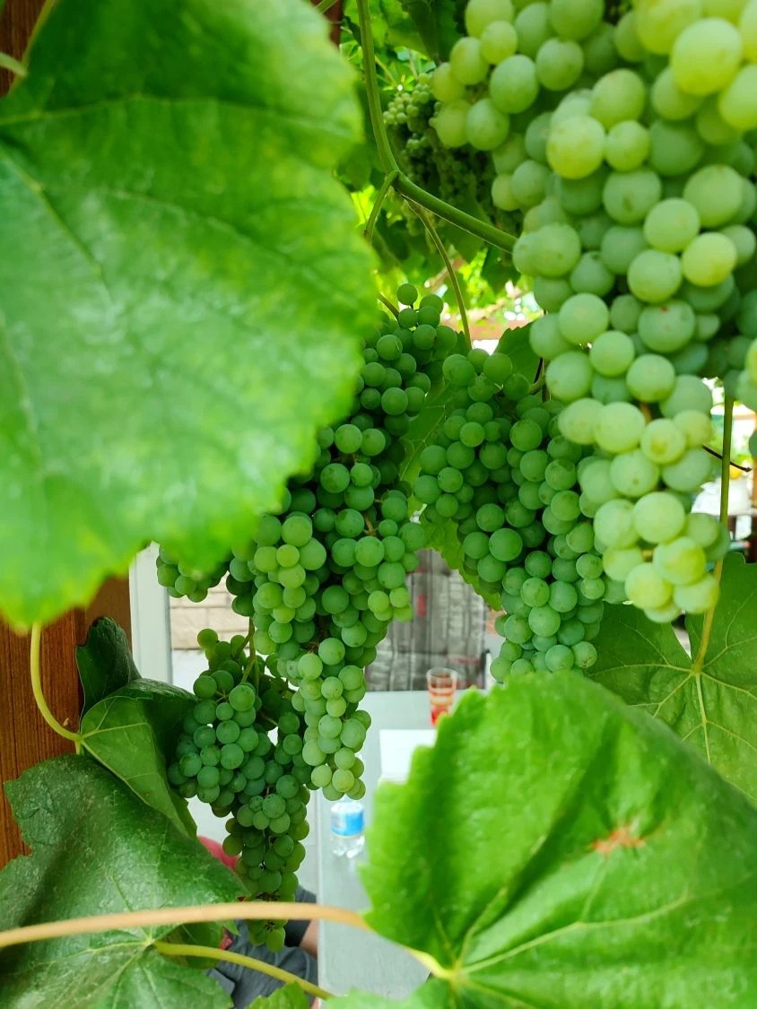Das dicht stehende Blattwerk der Weintraube ‚Romulus‘ ist ab dem Austrieb im Frühling von kräftiger grüner Farbe. Mit Herbstbeginn zaubert die Sonne interessante Rot- und Brauntöne hervor. Daher findet die Weinrebe als Schattenspender und dekoratives Element an Hauswänden Einsatz. Vitis ‚Romulus‘ blüht von Mai bis Juni recht unscheinbar. Die ersten Beerenansätze sind kaum größer als ein Stecknadelkopf. Die kleinen, grünen Winzlinge geben einen ersten Eindruck der entstehenden Fruchtfülle. Im Spätsommer, je nach Witterung ab Ende September bis in den Oktober hinein, ist Erntezeit. Zur Reife erscheinen die Beeren in Hellgrün mit gelblichem Anklang. Früchte Weintraube enthalten keine Kerne und erreichen die Größe einer Fingerkuppe und schmecken süß. Die Weinlese im heimischen Garten ist ein unglaublicher Genuss. Die Weintraube ‚Romulus‘ lässt sich vielseitig in den Garten integrieren. Fassaden, Torbögen und Geländer bekommen durch Weinranken einen individuellen, natürlichen Charakter. Seit Urzeiten genießen Menschen Weintrauben. Die Weintrauben der Sorte ‚Romulus‘ enthalten gesundheitsfördernde Inhaltsstoffe, Vitamine und Mineralstoffe. Die Weintraube ‚Romulus‘ liefert mild schmeckende, kernlose Früchte, die frisch oder getrocknet, bei Jung und Alt beliebt sind. Aus sonnengereiften Beeren entsteht feiner Traubensaft als Wintervorrat. Die zarten Trauben bilden die Grundlage für edle Gelees und Marmeladen. Leckere Weinbeeren oder Rosinen sind ein leckerer Bestandteil vieler Kuchen- und Tortenrezepte. Fällt die Lese reichlich aus, steht der eigenen Weinerzeugung nichts im Wege. Diese genügsame Tafeltraube wächst an jedem sonnigen Platz ausgezeichnet und erfreut den Gärtner mit ihren süßen Früchten.