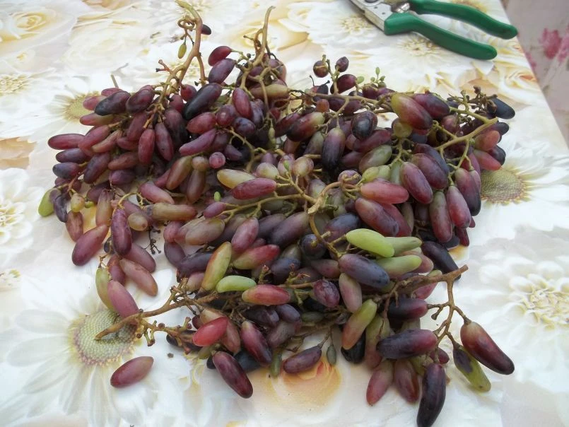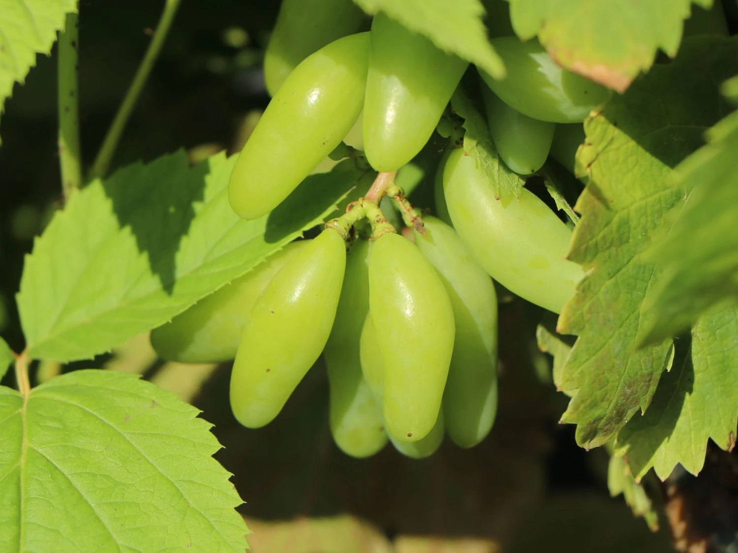 Die Weintraube ‚Souvenir‘ ® / ‚Datteltraube‘ erinnert mit ihren Früchten nicht allein optisch an Datteln. Die Beeren der Pflanze schmecken ebenso zuckersüß wie die orientalischen Leckerbissen. Dazu gesellt sich ein sehr fruchtiges Aroma, das (bot.) Vitis ‚Souvenir‘ ® / ‚Datteltraube‘ bei Kennern so beliebt macht. Bei Reife zeigen sich die Weinbeeren blaurot bis blauschwarz. Sie sitzen in Trauben zusammen und hängen in einer unglaublichen Vielzahl an den Weinreben. Die Weintraube ‚Souvenir‘ ® / ‚Datteltraube‘ hat eine mittlere bis späte Reifezeit. Ab Mitte September steht dem Genuss nichts mehr im Wege. Die Beeren lassen sich als Tafeltrauben verwenden oder zu Saft und Wein verarbeiten. Auch zum Backen sind sie bestens geeignet.