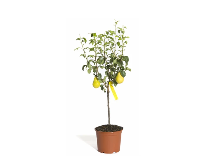 Pralle, bauchige Birnen in leuchtendem Gelbgrün laden im Herbst zum Hineinbeißen und Genießen ein. Ihr mittelfestes Fruchtfleisch zerschmilzt auf der Zunge und ist wunderbar saftig. Es schmeckt fantastisch süß und aromatisch. Die Zwerg-Birne ‚Condo‘ ist ein anmutiges, kleines Obstgehölz, das in kleinen Gärten Platz findet. Sogar auf dem Balkon im Kübel entfaltet das Gehölz seine schöne Optik. Die schöne (bot.) Pyrus communis ‚Condo‘ überrascht mit schmackhaften Früchten. Und sie ist mit ihrem sattgrünen Laub und der Blütenpracht im Frühling ein wunderschöner Blickfang. Mit seinen regelmäßigen Erträgen begeistert das zierliche Obstgehölz den Gartenfreund. Pyrus communis ‚Condo‘ wächst aufrecht und buschig. Ihr Wuchsverhalten ist schwach bis mittelstark und anfangs aufrecht, der jährliche Zuwachs beträgt fünf bis 20 Zentimeter im Jahr. Sie erreicht eine Höhe von 150 bis 180 Zentimetern und eine Breite von 100 bis 130 Zentimetern. Ab Ende April ist die Zwerg-Birne ‚Condo‘ mit einem zarten, weißen Blütenflor übersät. Die kleinen, schalenförmigen Blüten verströmen einen leichten Duft. Sie locken Bienen, Hummeln und andere Nützlinge an, denen sie als wertvolle Nahrungsquelle dienen. Aus den Blüten entwickeln sich die leckeren Früchte, die ab Ende September ihre Erntereife erreichen. Die mittelgroßen, bauchigen, gelbgrünen Birnen weisen ein mittelfestes, saftiges Fruchtfleisch auf. Sie verwöhnen den Gaumen mit ihrem herrlich süßen Geschmack und der feinen Fruchtsäure. Von Oktober bis Dezember sind die Birnen genussreif. Das kleine Obstgehölz zeigt mittelgrünes, dekoratives Laub. Die Blätter sind oval und nach vorn zugespitzt.