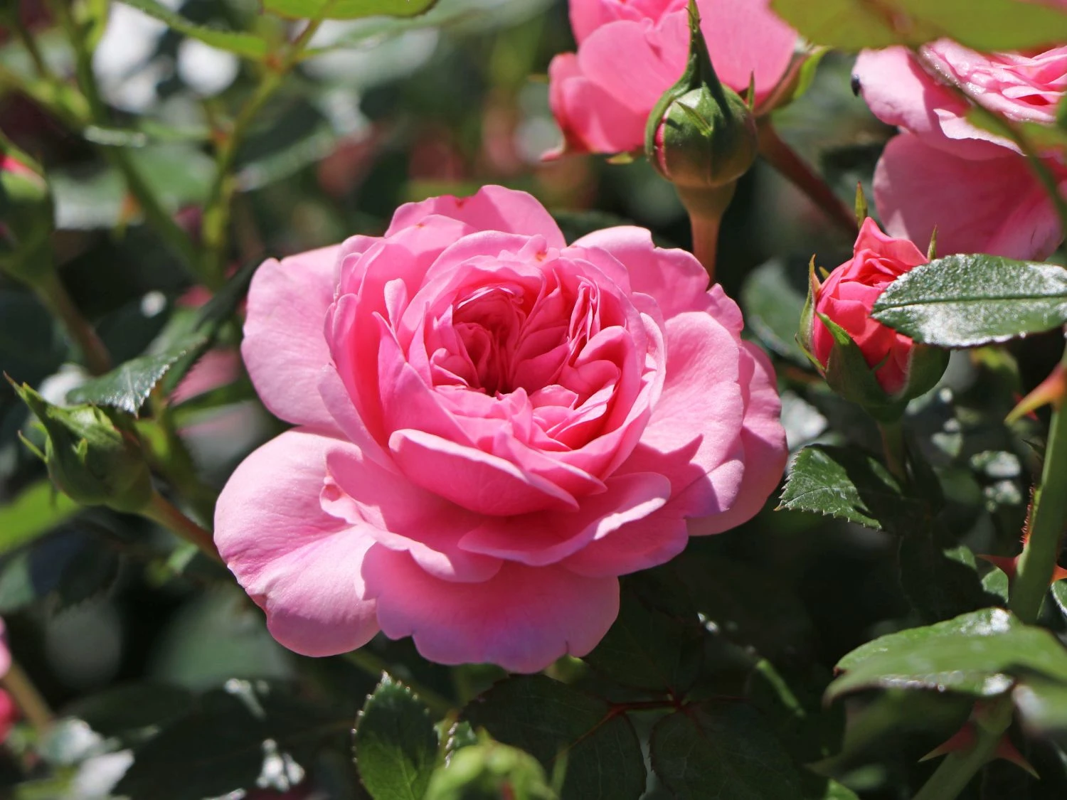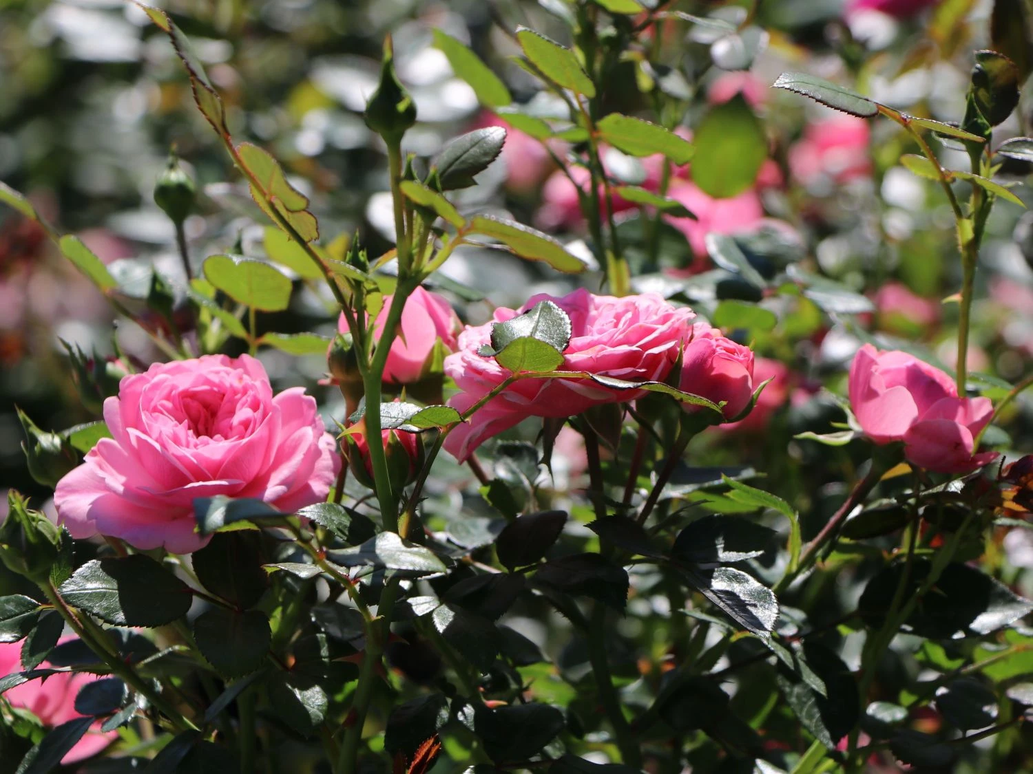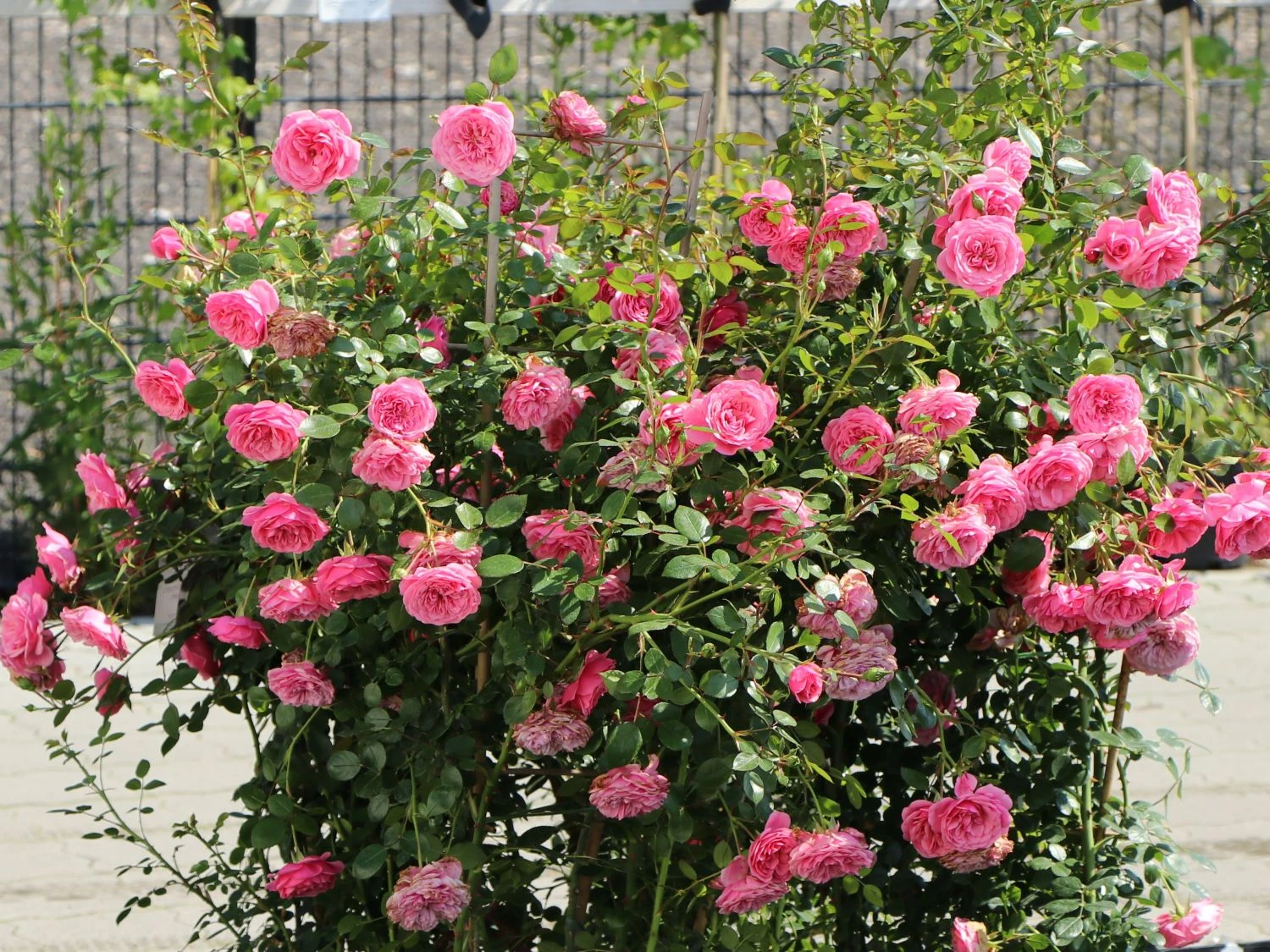Blüten sind bei der Zwerg-Kletterrose Starlet®-Rose ‚Eva‘ ® von Juni bis November in großer Menge vorhanden. Ständig ersetzen neue Blütentriebe die verblühten Pflanzenteile. Wie kleine Pompons, heben sich die dicht gefüllten Blüten in kräftigem Rosa vom dunkelgrün gefärbten Laub der Pflanze ab. Dabei entsteht ein wunderschöner farblicher Kontrast. In Dolden stehend, ist die Blütenpracht der leicht kletternd wachsenden Rose, ein wahrer Augenschmaus. Dabei ist jede einzelne Blüte prachtvoll anzuschauen. Trotz der geringen Größe, wirkt jedes dieser Juwelen wie ein von Hand gefertigtes Kunstwerk. Der ungefähre Durchmesser einer Blüte beträgt vier bis sechs Zentimeter. Ausgepflanzt beansprucht die blühwillige Gartenschönheit wenig Platz. Bei einer Pflanzung von mehreren dieser prunkvollen Kletterrosen, reicht ein Pflanzabstand von 60 Zentimetern. Pro Quadratmeter erfreuen zwei der herrlich anzuschauenden Pflanzen Gärtner und Gartenbesucher. Als Kübelpflanze genutzt, benötigt das Tiefwurzlergewächs ein Gefäß mit einer Mindesthöhe von 50 Zentimetern. Zwerg-Kletterrose Starlet®-Rose ‚Eva‘ ® eignet sich hervorragend als Solitärpflanze. Gleichwohl ist sie vielseitig verwendbar, sei es als Sichtschutz am Rankgitter, als Schmuck am Rosenbogen oder als eindrucksvolle Augenweide im Kübel.