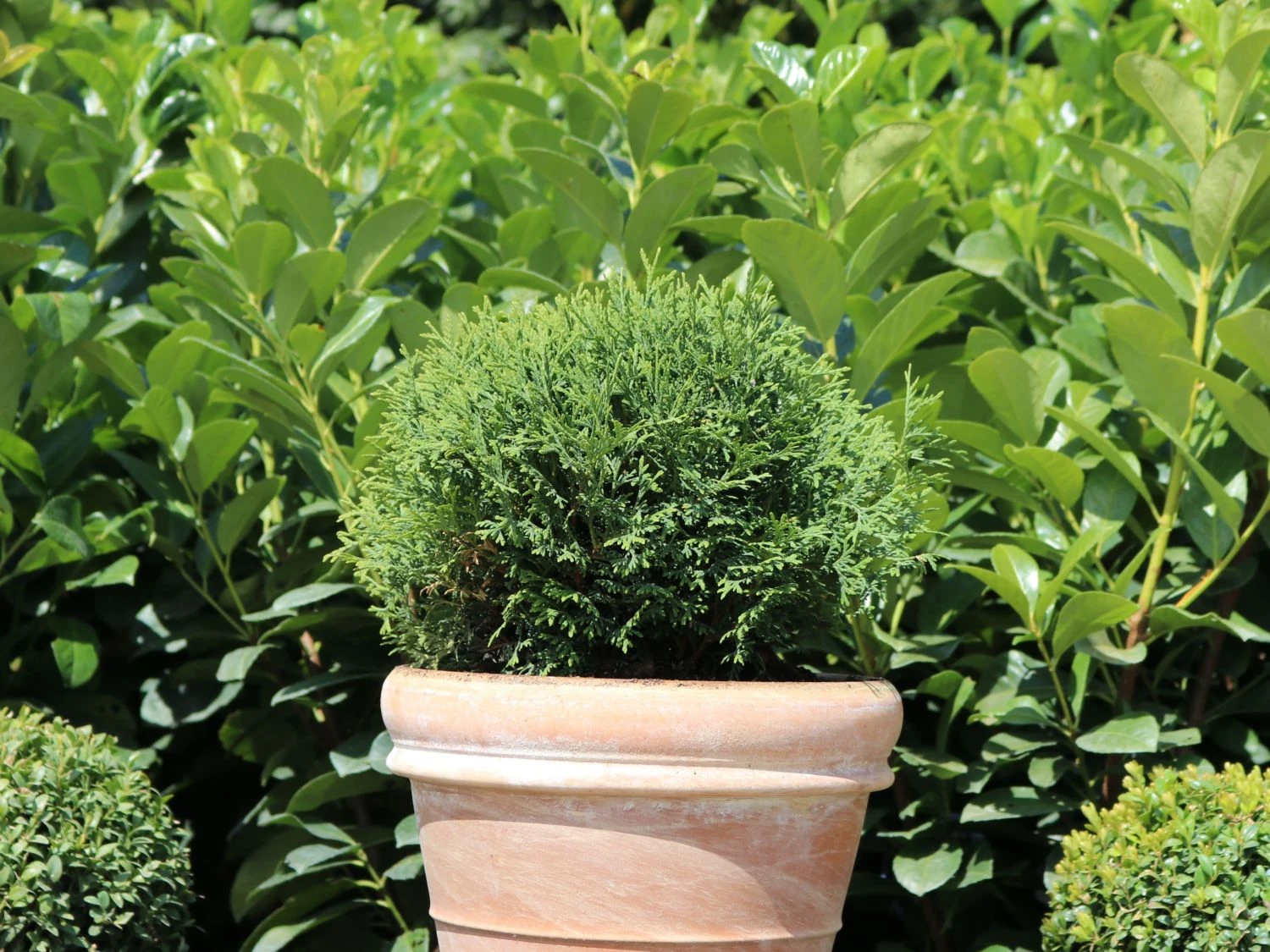 Mit ihrer winterharten und immergrünen Art sorgen sie ganzjährig für Farbe im Garten. Gärtner, die ihre Thuja im Sommer stutzen, regen die Triebe zum Wachstum und zum Verzweigen an. Ein großer Vorteil der Thuja occidentalis ‚Tiny Tim‘ ist ihr langsamer Wuchs. Somit benötigt sie seltene Rückschnitte und gestaltet sich unkompliziert in der Pflege. Die schönen Thuja-Pflanzen spielen in der Friedhofsgärtnerei und beim Bepflanzen von Gräbern eine große Rolle. Denn der Lebensbaum gilt als Wahrzeichen der Treue. Immergrün verschönert sie die Ruhestätte, ohne ein Zuviel an Pflege zu verlangen. Die schönen Pflanzen der Thuja zeichnen sich durch ihre schuppigen und aromatisch duftenden kleinen Nadeln aus. Das kleinstrauchige und immergrüne Gehölz der Thuja gehört zur Familie der Zypressengewächse. Die ursprüngliche Heimat der Pflanze liegt in Nordamerika, sie findet sich bei uns seit 1955 eingeführt. Sie zeigt sich ausgesprochen winterhart und wuchsfreudig. Als Heckenpflanze ist der Lebensbaum bei uns hauptsächlich kultiviert. Der Zwerg-Lebensbaum ‚Tiny Tim‘ bietet sich aufgrund seiner Größe für das Bepflanzen von Heide- oder Steingärten an. Auch als Solitärgehölz stellt Thuja occidentalis ‚Tiny Tim‘ einen Gewinn für den Garten dar. Vielen Vögeln bietet die Thuja einen sicheren, geschützten Platz zum Nisten. Auch in der Floristik sind die Lebensbäume ein wichtiger Bestandteil. Besonders in Adventsgestecken kommen die immergrünen Zweige zu ihrem großen Auftritt. Für kleine Sträuße oder Gestecke finden sie gerne Einsatz. Allerdings gehört der Lebensbaum zu den giftigen Pflanzen. Der Verzehr von Blättern und anderen Teilen der Pflanze ist für Menschen und viele Tiere abträglich.