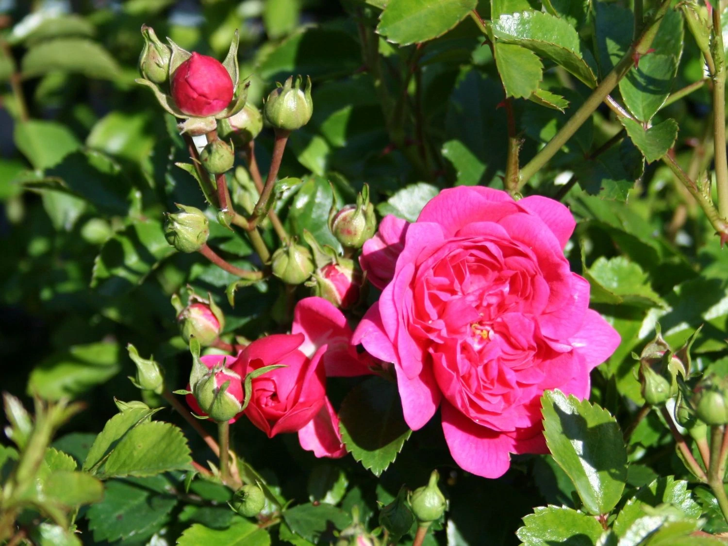 Die Zwergrose / Bodendecker-Rose ‚Pepita‘ ® ist ein Meisterwerk an Blühkraft und dichtbuschigem Wuchs. Ihre stark gefüllten Blüten bezaubern den ganzen Sommer hindurch. Von Juni bis in den Herbst hinein bildet sie in ihren dichten Dolden ständig neue Blütenknospen. Zu ihren unschlagbaren Vorzügen gehören die festen, bei Regen haltbaren Blüten und ihr enorm gesundes, dunkelgrünes Laub. Das kräftige Pink der Blüten wird in jedem Garten schnell zum Hingucker. Das überreiche Blütenmeer von (bot.) Rosa ‚Pepita‘ ® überzeugt nicht nur im Garten. Sie begeistert ebenso in einem Pflanzgefäß. Das hat den Vorteil der variablen Platzwahl. Egal ob auf Balkon oder Terrasse die zierliche Zwergrose / Bodendecker-Rose ‚Pepita‘ ® gefällt mit ihrem kompakten Wuchs und ihrem glänzenden Laub. In der Höhe erreicht sie Größen zwischen 40 und 60 cm. Seitlich dehnt sie sich bis zu einer maximalen Breite von 50 cm aus. So entstehen auf kleinstem Raum wunderschöne Rosenträume. Auf einer Fläche im Beet wirken kleine Gruppen von drei bis fünf Exemplaren apart. Diese zauberhafte Zwergrose schmückt sich mit zahlreichen Auszeichnungen.
